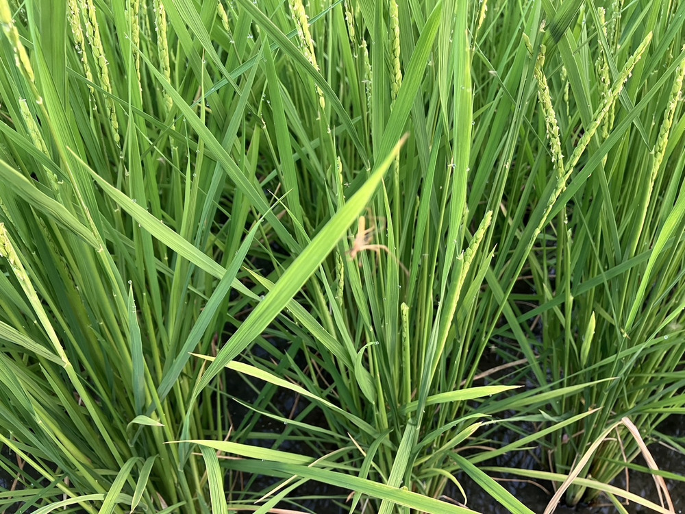 稲さんが出穂を迎えると同時に、田んぼの中でクモさんの姿を多く見かけるようになります。稲さんが大きく成長するにつれて、風通しが悪くなり、虫さんの数も増えてきました。それを狙って、クモさんが網を張り、虫さんを捕食しています。