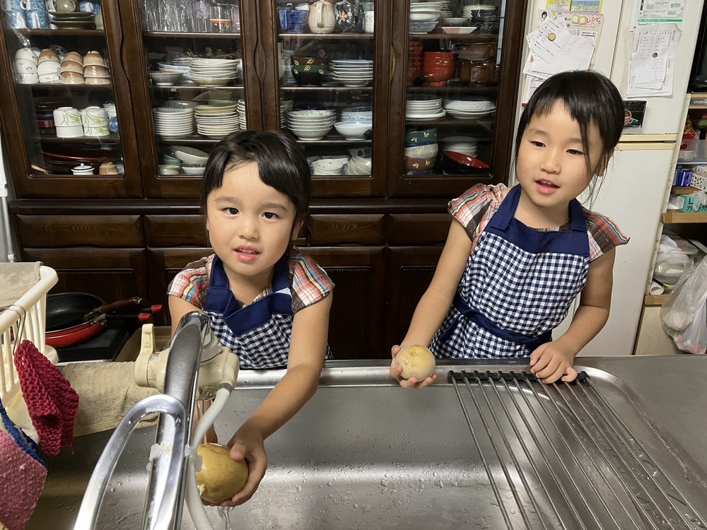 ママから真剣に教わる我が家のシェフ達は5歳の双子