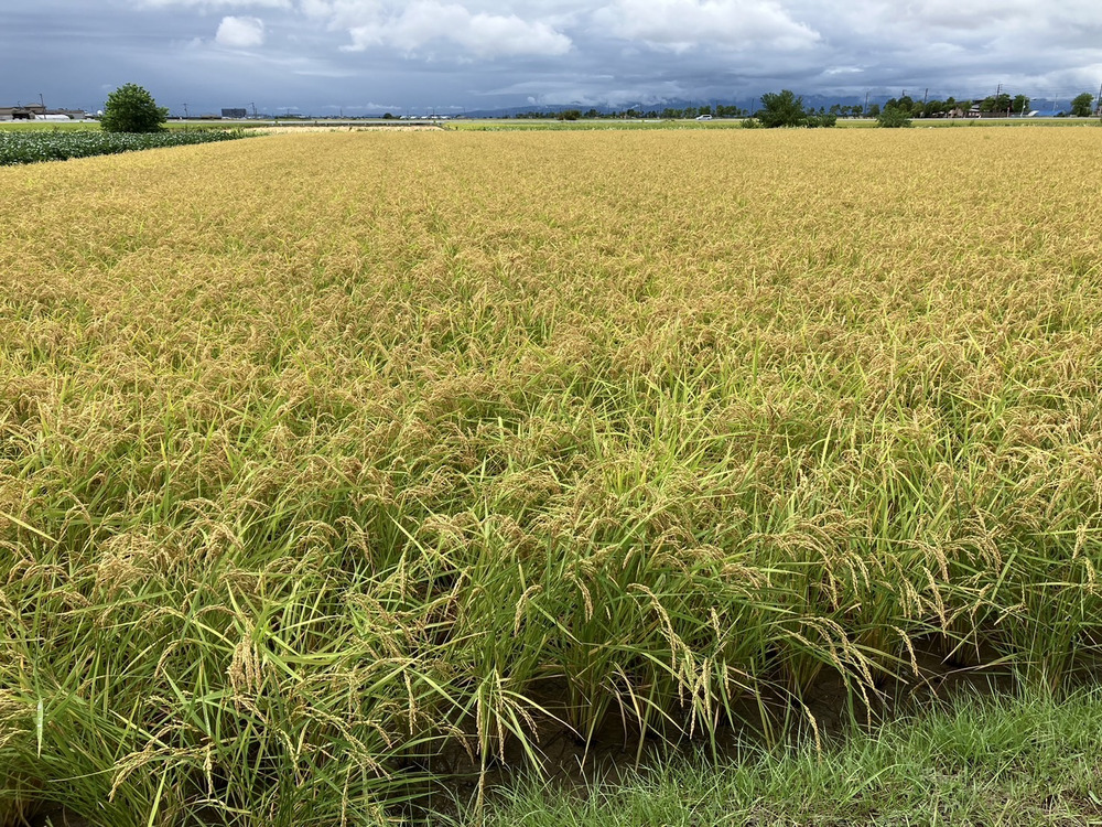 久しぶりに雨が降り、稲の姿が少し変わった気がします。雨が大地に染みわたり、稲も嬉しそうにしているようです。雨の力で、ぐんと成長が進み、熟度も感じられるようになりました。