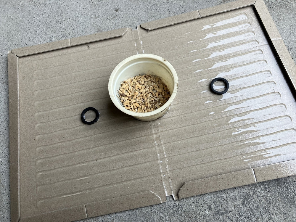 わたしの倉庫や住まいでは、ネズミ対策として市販の粘着シートを使っています。このシートに、わたしが育てた無肥料・無農薬のモミを餌として置くと、ネズミがその匂いに引き寄せられ、95%以上の確率で捕獲することができるんです。おかげさまで、粘着シートを取り換えて1年間に5匹以上はしっかり捕まえていますので、効果には自信があります。
