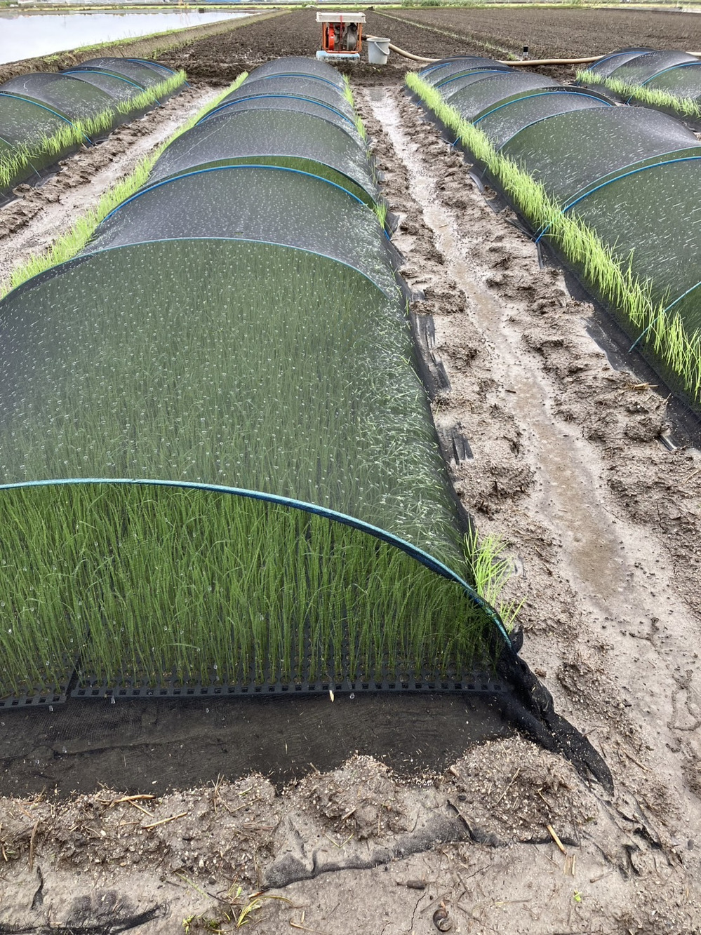 これからは水を入れたり抜いたりしながら、外の空気に触れさせて、苗が自然の環境に少しずつ慣れていけるようにしていきます。