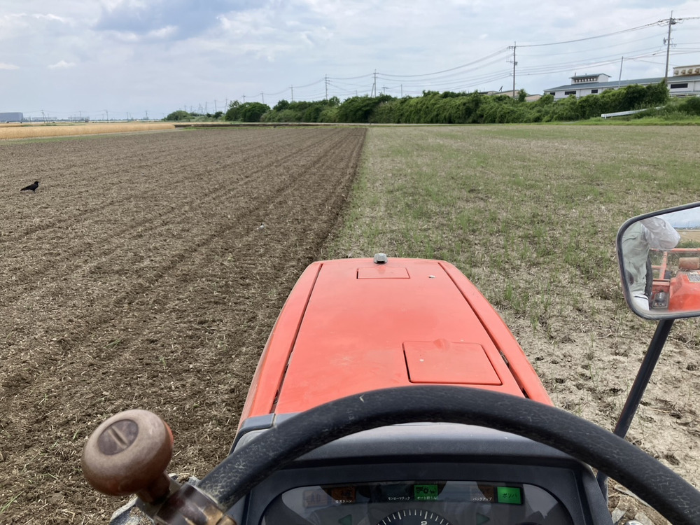 静かな田んぼにトラクターの音が響くと、いよいよ始まるんだなと気持ちが引き締まります。