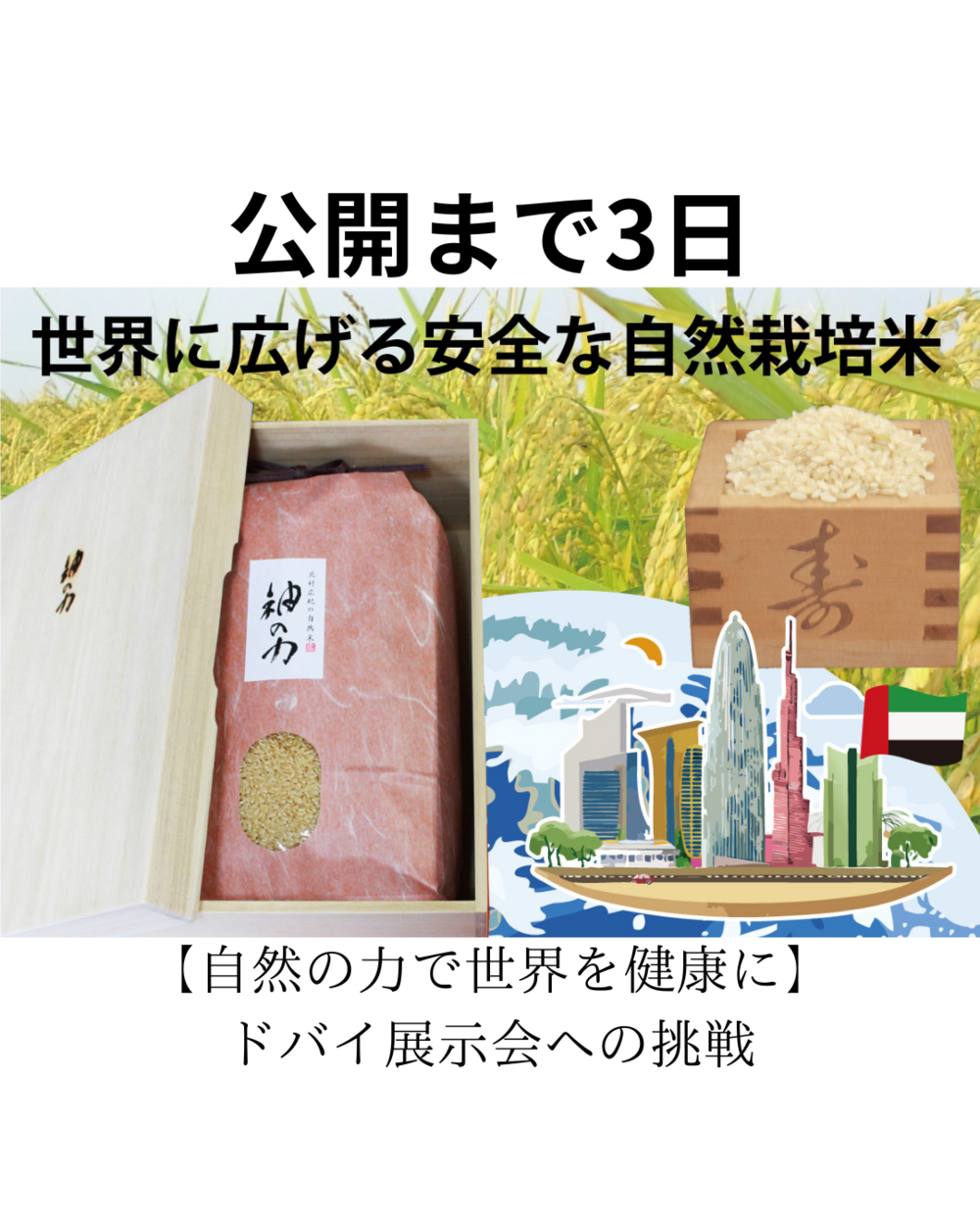 このお米を、世界の人々に知ってもらい、健康な食を届けたい——そんな想いを込めて、
