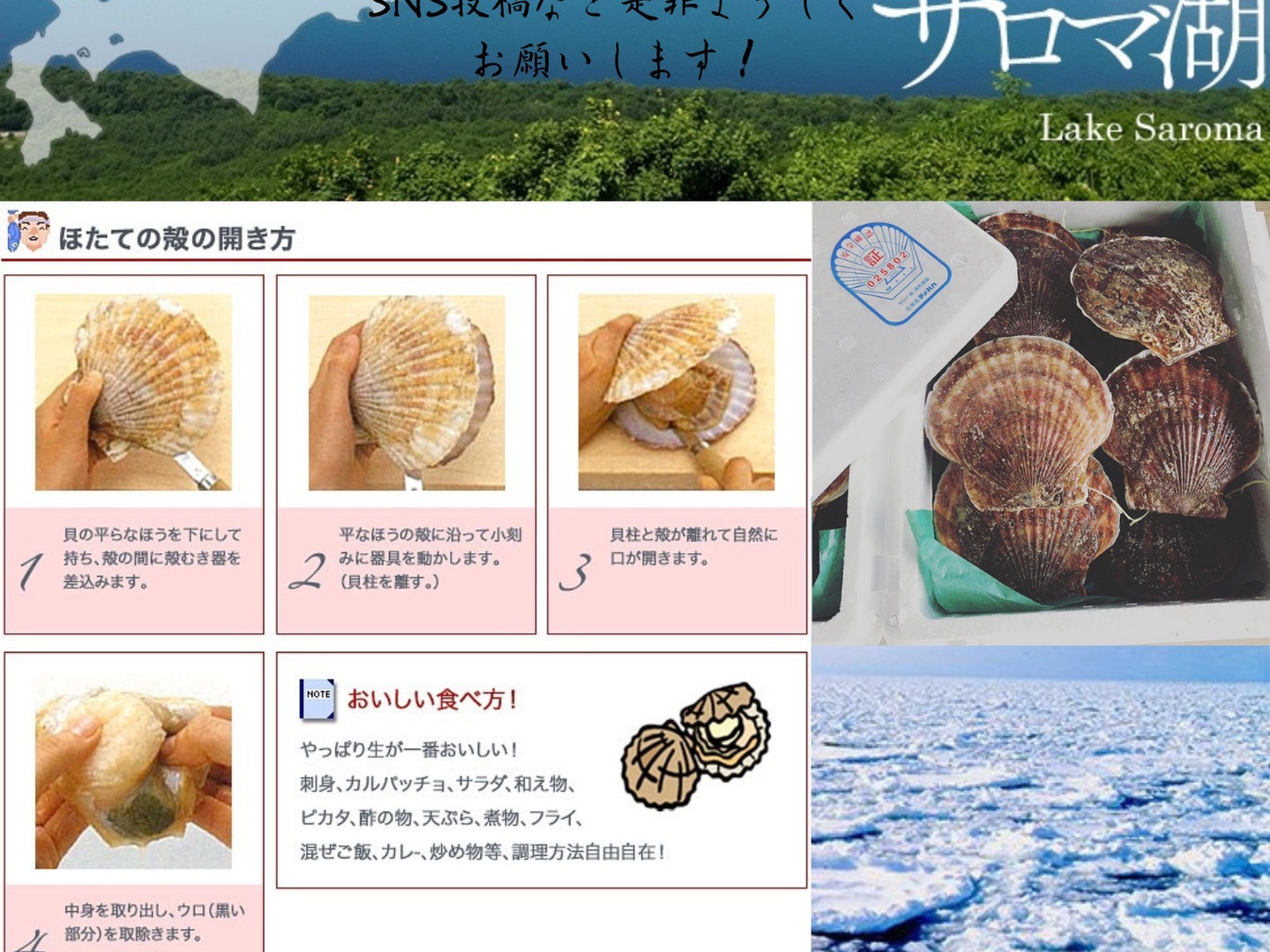 本間漁業 北海道紋別郡 6いいね 生産者のこだわり 1 活ホタテ 2 鮮魚 私たちについて私たちについて北海道 紋別郡本間漁業北海道の広大なオホーツク海とサロマ湖の恵みを小さな街から漁師直送で全国の皆様に届けたくて発信します日本で3番目に大きい湖のサロマ湖は養殖ホタテ発祥の地!サロマ湖からお届けする3年間大切に育てられた養殖ホタテを全国の皆様に味わって頂きたくて…【商品紹介…】シベリアはアムール川よりやって来た流氷により発生した豊富なプランクトンを餌にしてオホーツク海の冷たい海水により身が引き締まった甘みと旨みの強いサロマ湖産の養殖ホタテを生きたまま産地から直送致します。個人で全て行なっておりますので取り扱い商品や規模は少ないですが少しずつのんびりと増やして行こうと思っております。【取り扱い商品】ホタテ貝メインで主に魚介類を取り扱います。真ホッケ、タラ、アイナメ、カレイ数種類、クロソイ、シマソイなどの取り扱いも時期的ではありますが取り扱いできます。 漁獲シーズンホタテ貝…8月上旬〜12月上旬鮮魚… 5月下旬〜7月上旬 9月中旬〜11月下旬詳しくはご相談下さい。※販売は在庫が無くなり次第終了しますので記載した時期よりも早く終了する場合があります。【配送】ヤマト運輸さんでの輸送ですナマモノのため返品返金は受け付けていませんのでご理解ください。私たちのこだわり活ホタテ採苗から出荷まで全て自分自身で行う徹底管理された養殖活ホタテです❗️3いいね!いいね!鮮魚漁師が厳選したその日取れた最高の魚達を活〆してお客様の元へお届けします3いいね!いいね! ログイン後にフォローできます