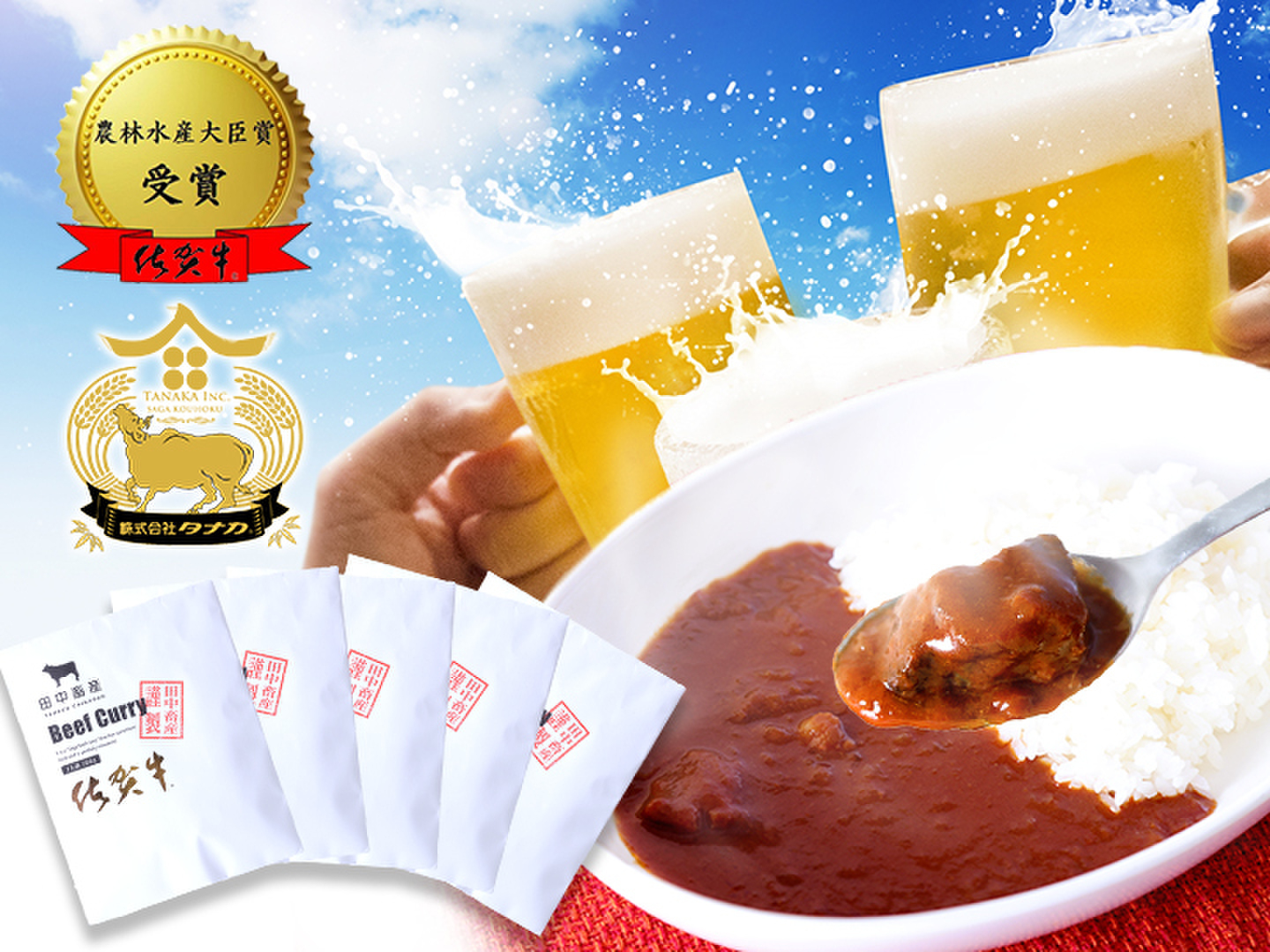 農林水産大臣賞を2度受賞した田中畜産が自信を持ってお届けする、佐賀牛「たなか和牛」を使用したこだわりのカレーセットです。