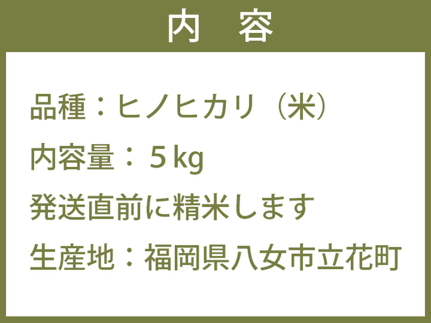 福岡県八女産ヒノヒカリ5kg!ちょうどいい食べきりサイズ