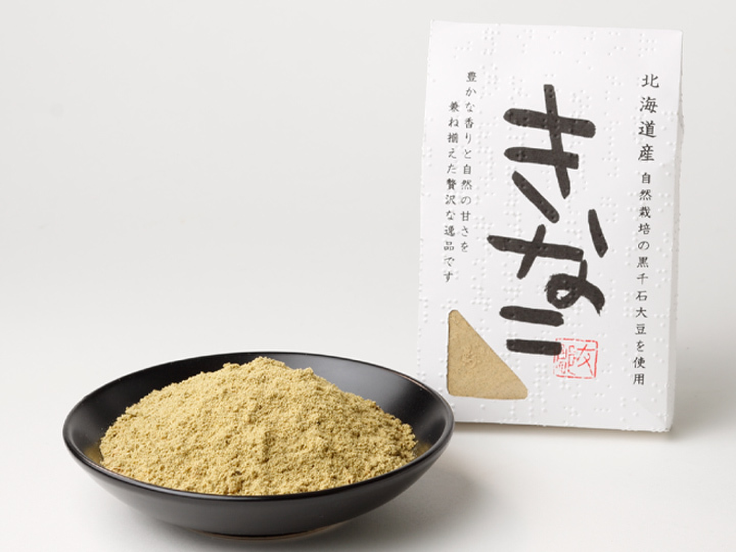 黒千石きな粉:香ばしく人気の商品です。牛乳や豆乳に入れるとカフェオレのような味になります。