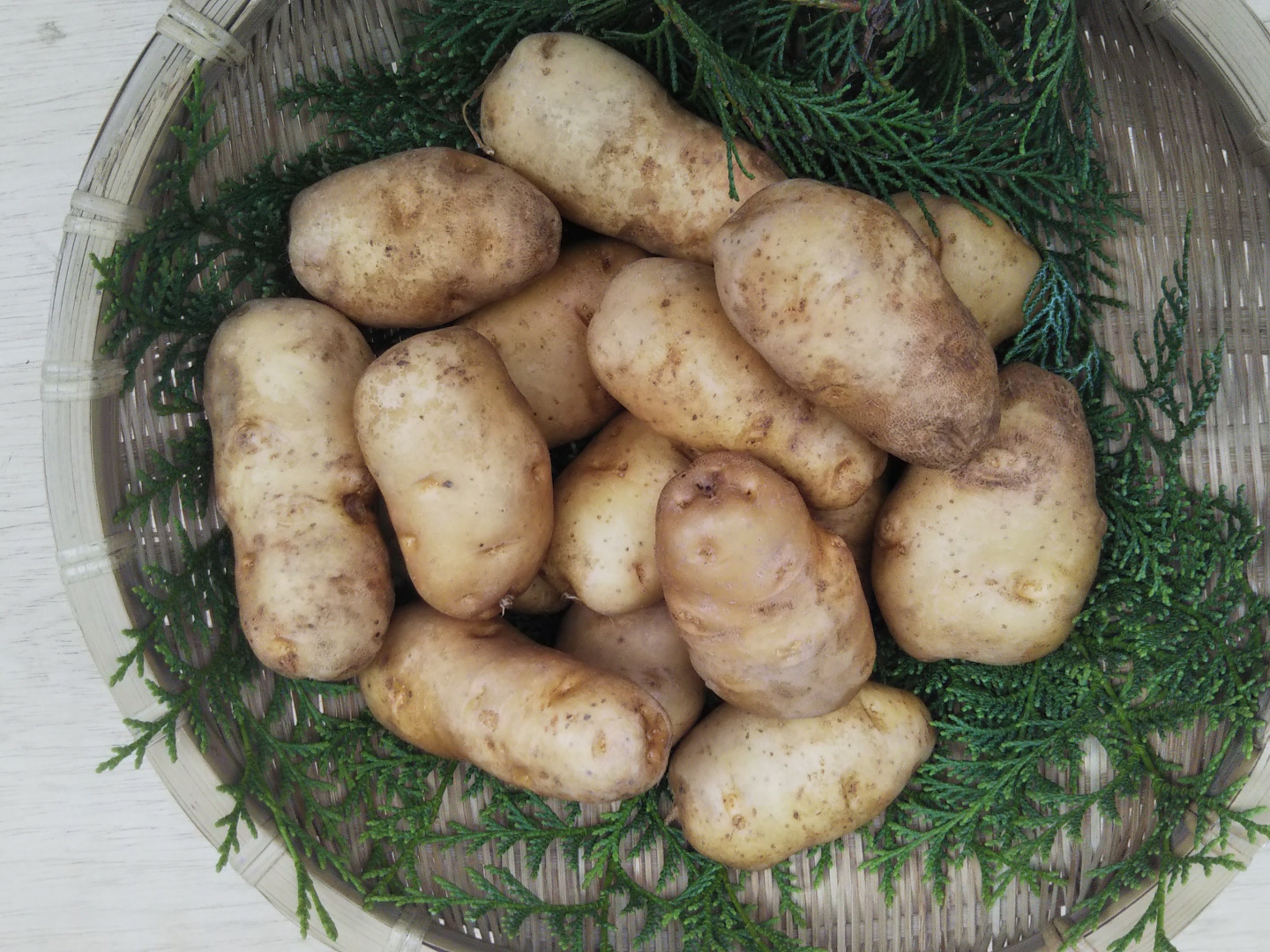 【秋採りの新じゃが】 伝説のじゃが芋【珍しいじゃが芋:ごうしゅ芋】紅白ごうしゅ芋各500gセットでお届け。 徳島県 にし阿波地方の伝統的なじゃが芋。長く保存できるように「土付きのまま」届ます。