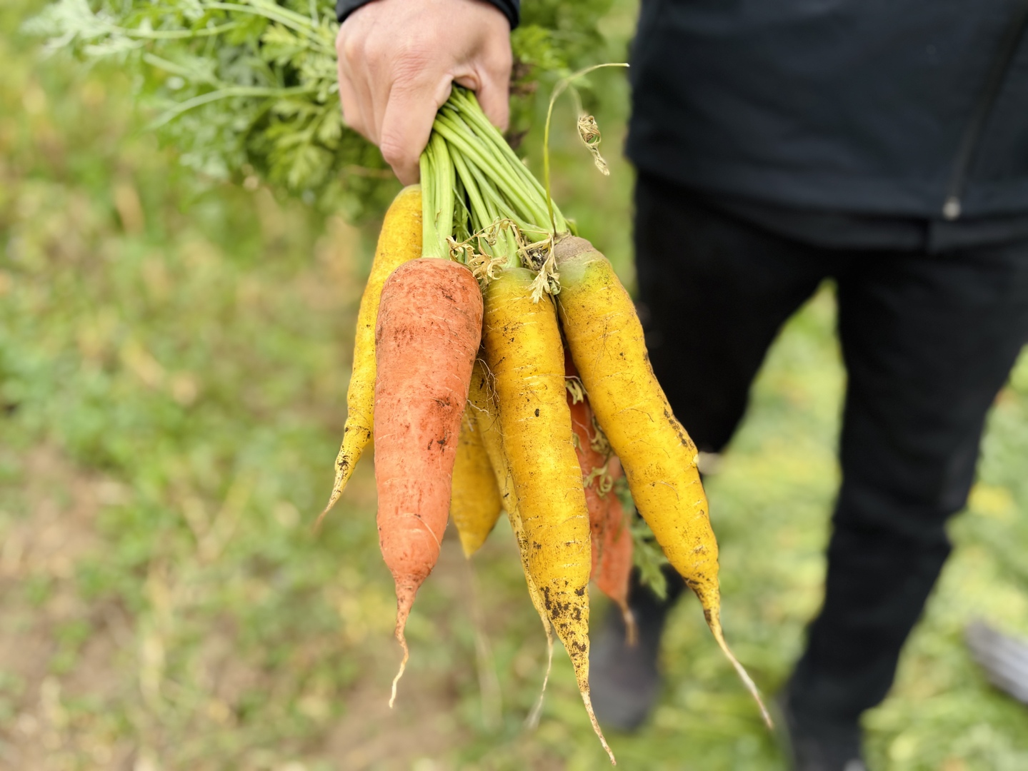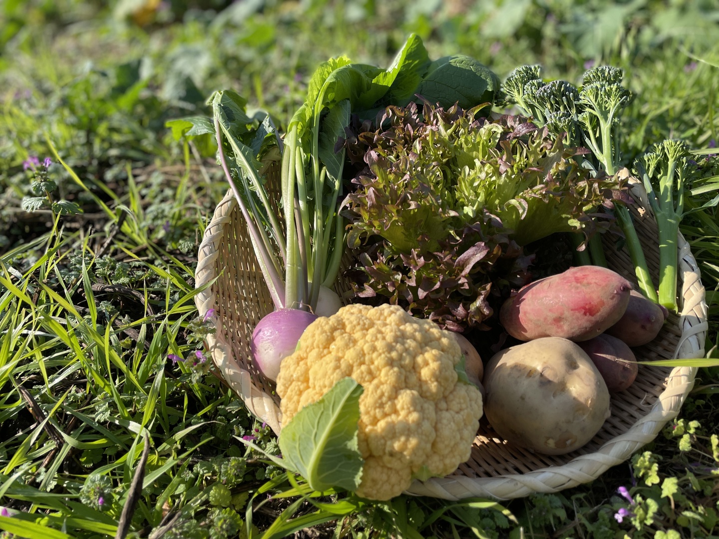 ニンジン(フルーツニンジン、黄色ニンジン)、秋ジャガイモ(デジマ、アンデスレッド)、さつまいも、コカブ、春菊、大根(ミニ大根、紅くるり、紅しぐれ)、ほうれん草、リーフレタス、白菜