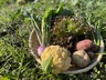ニンジン、新ジャガイモ、新玉ねぎ、コカブ、ラディッシュ、ズッキーニ、ミニトマト、リーフレタス、みさきキャベツ