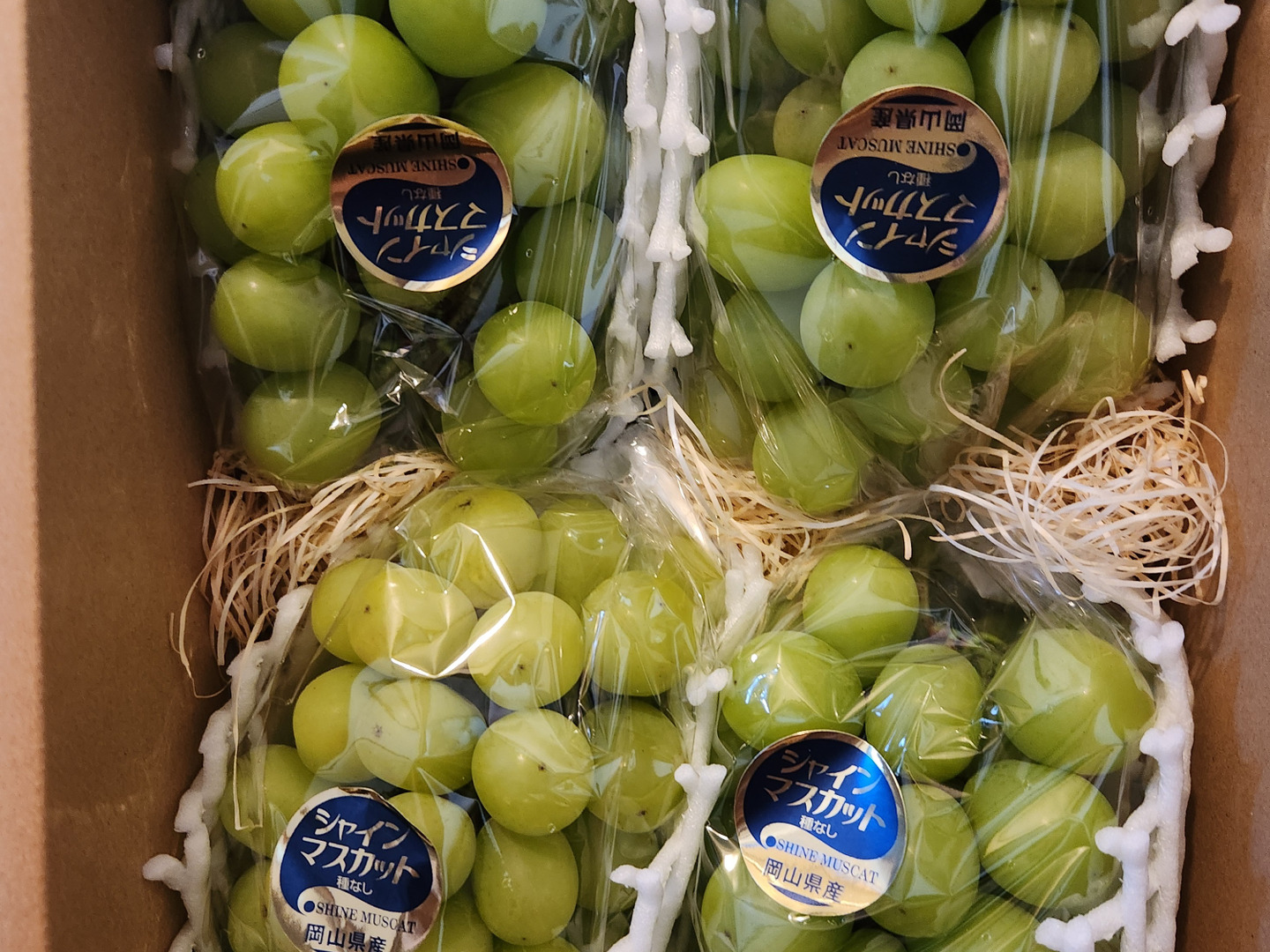 できるかぎり完熟したシャインマスカットをお届けしますので、果皮の黄変、かすれ、黒い斑点等が出ることがございますが、問題なくお召し上がりいただけます。