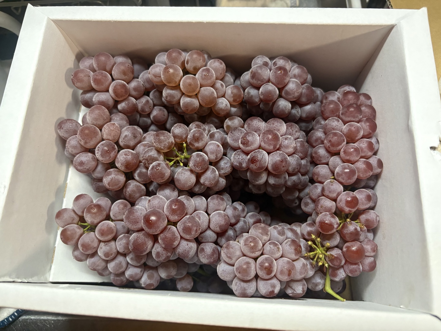 糖度20度前後の甘〜いデラウェアを朝採りして当日のうちに発送します。