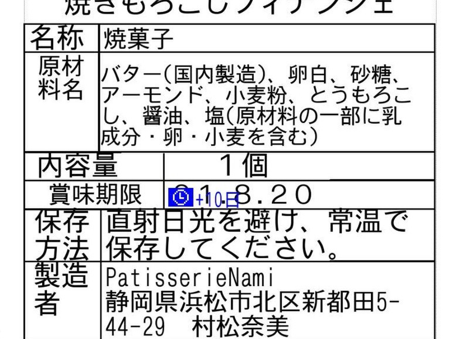 フレッシュとうもろこし使用!焼きトウモロコシフィナンシェ