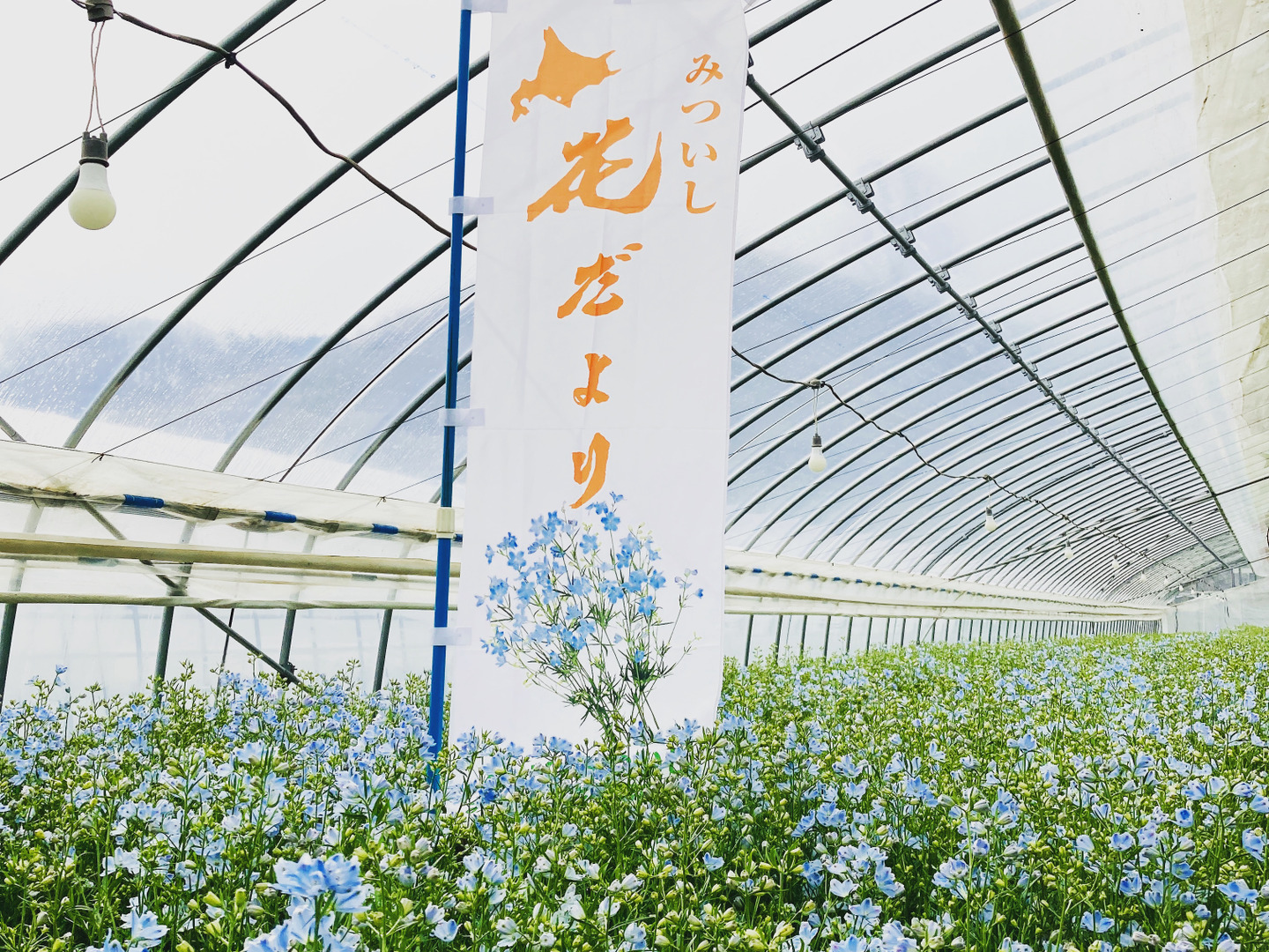 みついしは北海道のなかでも夏期冷涼・冬季暖温で雪が少ない地域のためデルフィニウム栽培に適しております。