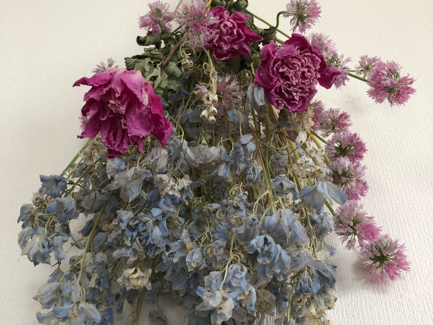 最後はドライフラワーで楽しみます。そのまま吊るしても可能ですが、「ドライフラワー用乾燥剤」を使用すると、より発色がよく切り花そのままの状態をドライフラワーにすることができます♪