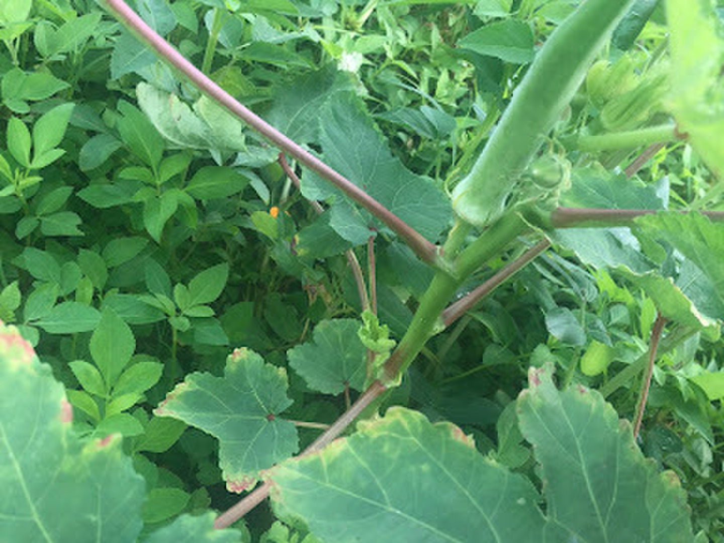 梅雨の豪雨、長雨を乗り越え、夏の暑い日差しを浴びて、すくすく育った島オクラ。