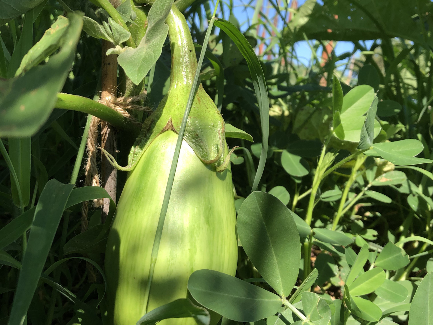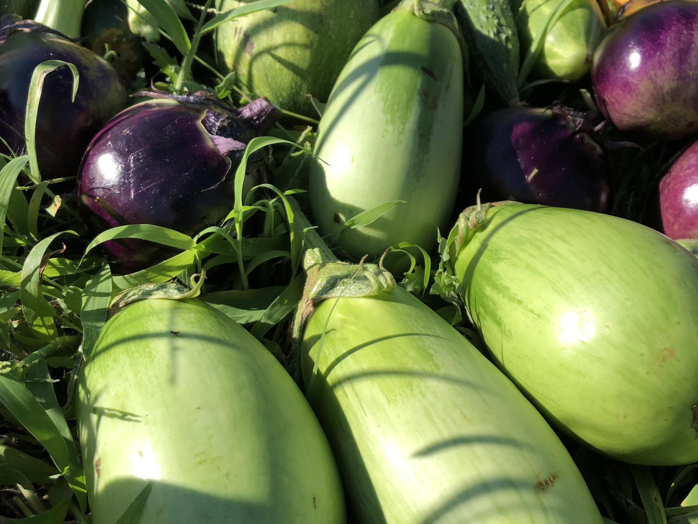 火を通すと、トロッと食感のとろける旨さが人気の伝統野菜、緑(青)茄子です。