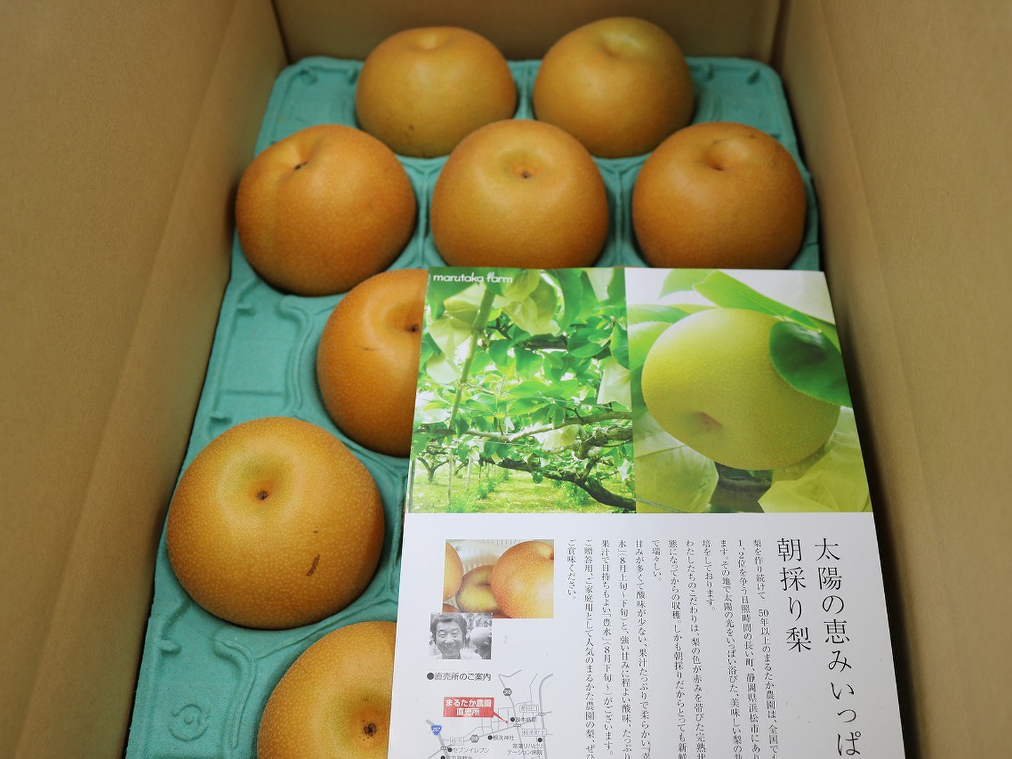 樹齢50年近くなる大木に、有機質肥料を中心に施肥し、木で赤みがかるまで完熟させて、早朝収獲して、発送しています。市場流通ではできない完熟梨の美味しさをぜひ、味わっていただけたらと思います。