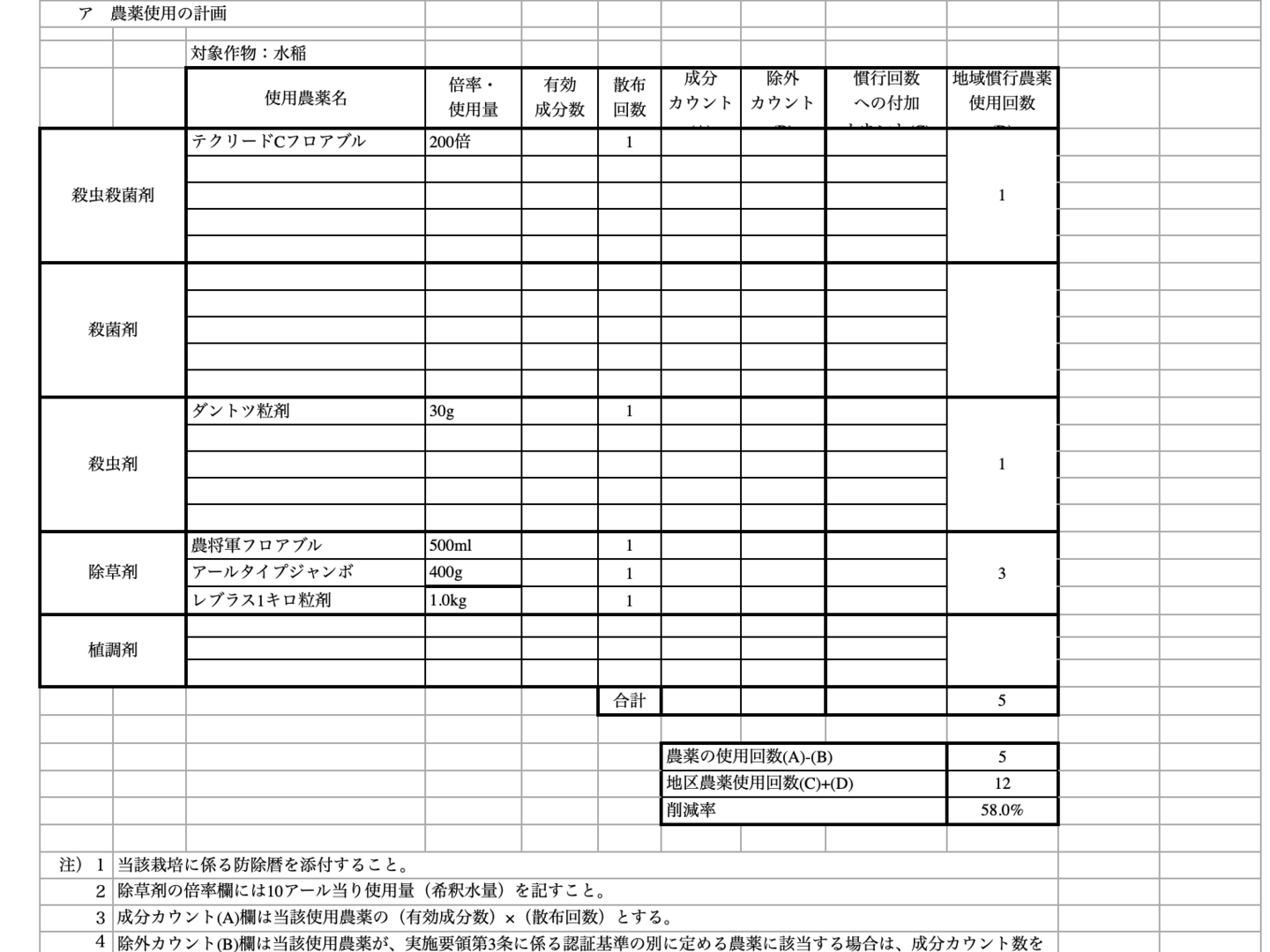 農薬、化学肥料は通常栽培の42%、58%削減。