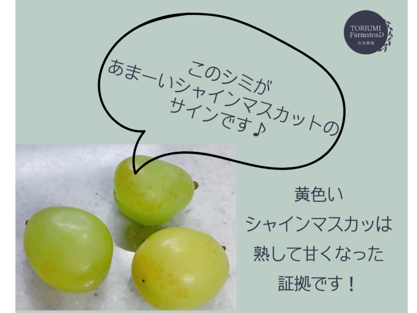 木にならせたまましっかりと熟させることで、黄色い甘いシャインマスカットになるんです♪