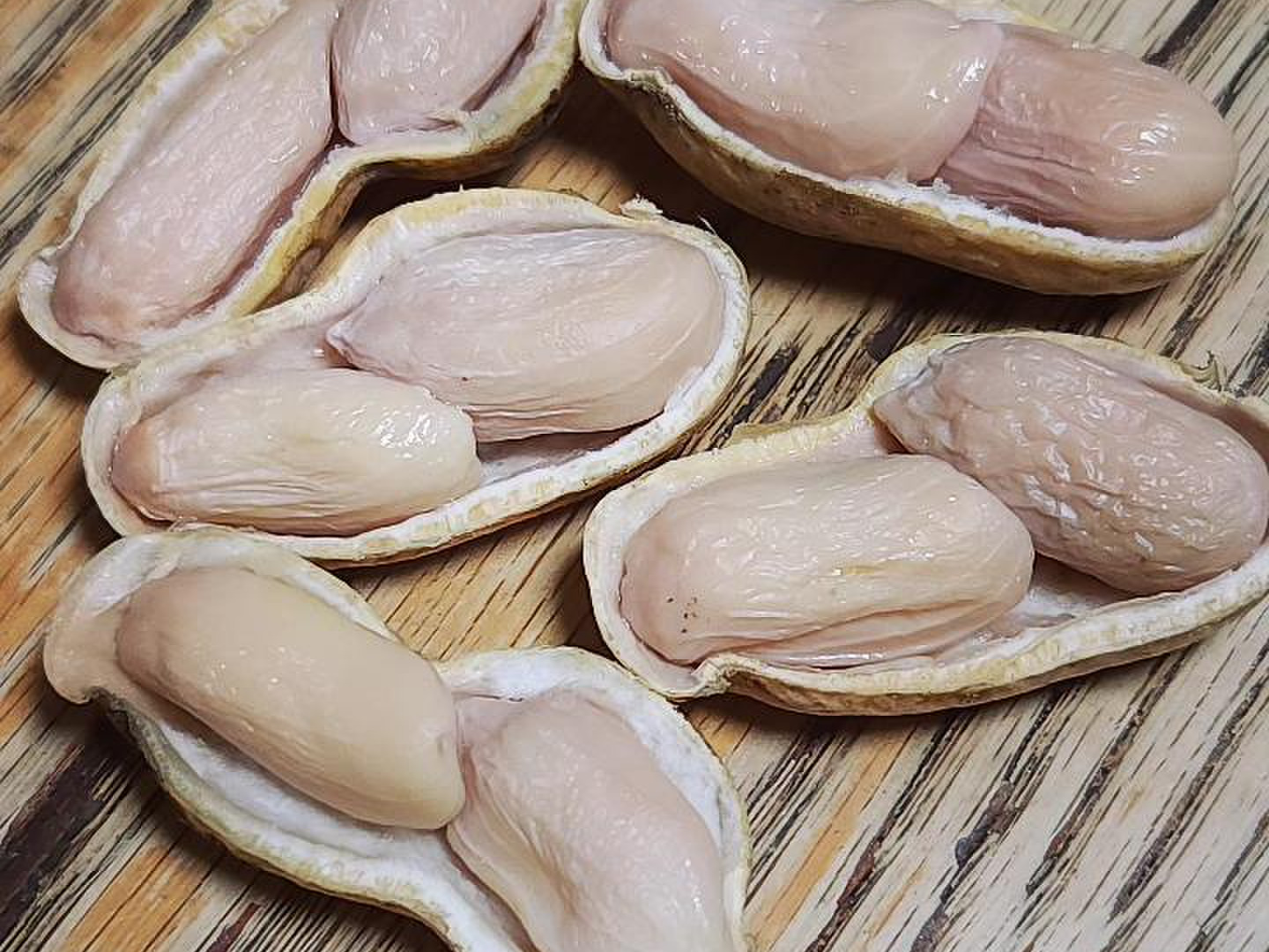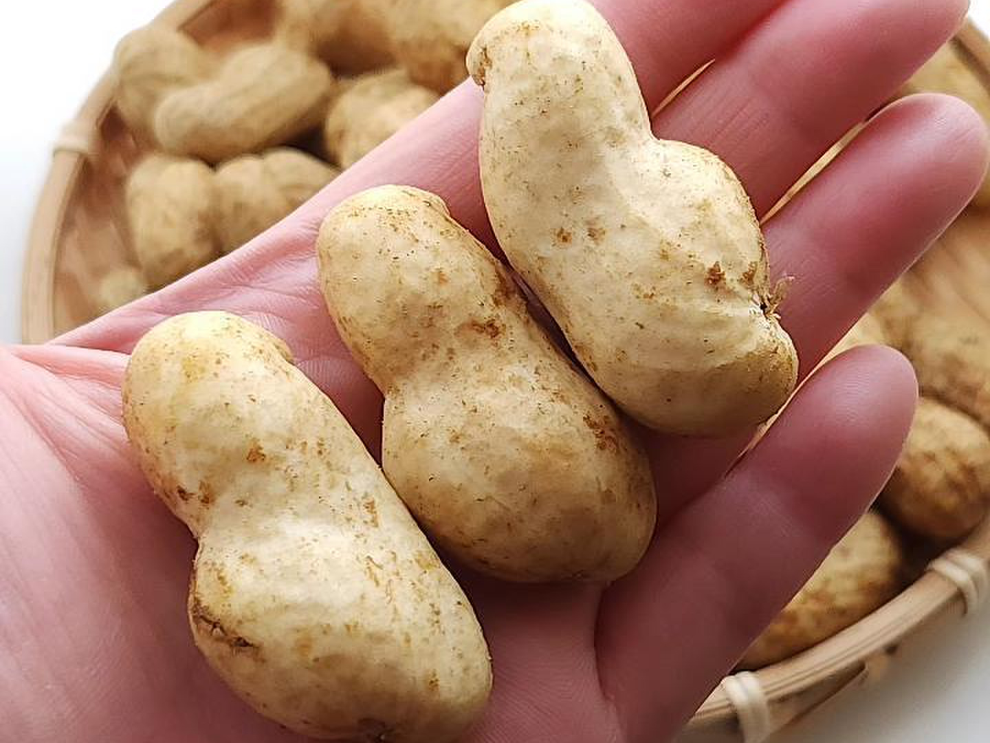 落花生は、株元から外側に向けて、順に熟していきます。ですので、収穫すると、株元は完熟に、外側は若めな豆となります。