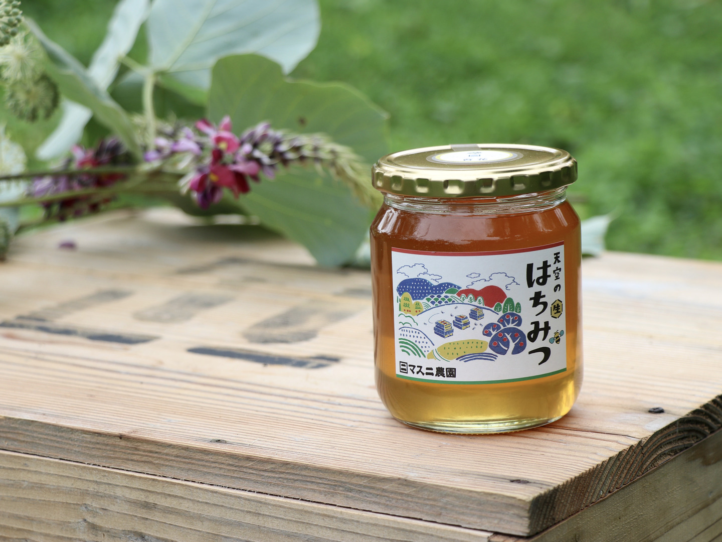 りんご農家が育てたハチからとれたはちみつ。初夏の植生を彩る花たちであるクローバー、ケンポナシ、ビービーツリーなどの花からつくられたはちみつです。開花してから少しずつ集められたはちみつを熟成させ、絶妙なタイミングで搾ります。加工をいっさいせず、採蜜の瞬間のフルーティーな香りをそのまま瓶に詰めて出荷します。