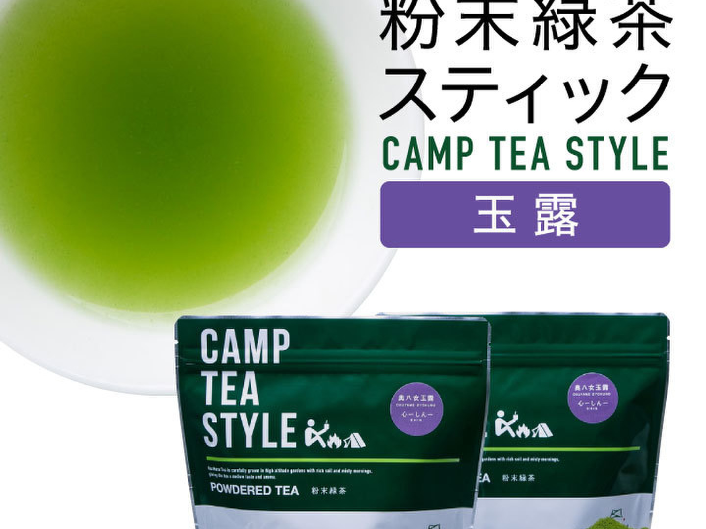 八女茶産直 粉末のお茶 キャンプ、登山、トレッキング用、家庭用にパウダー緑茶(粉末緑茶)スティック タイプ CAMP TEA STYLE 玉露(心)スティック 0.8g×20袋 2個セット