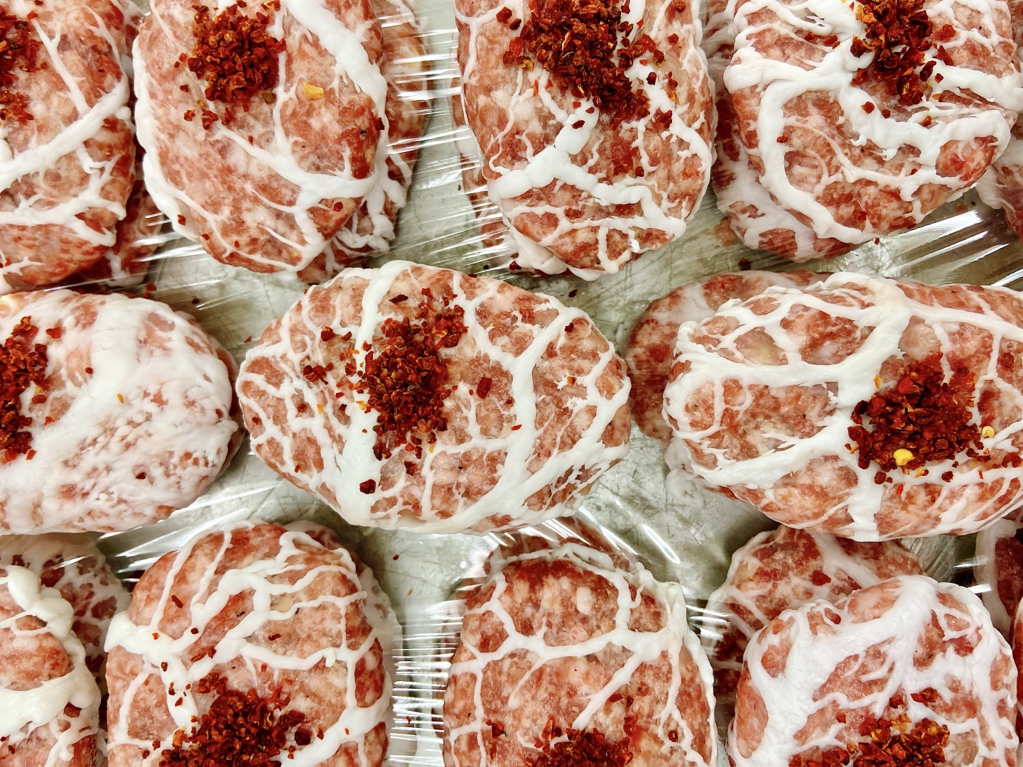 | 内容 | 網脂包みハンバーグ・チーズ味(100g)、網脂包みハンバーグ・パセリ味(100g)、デコレポーク・ベリーツイスト(3本入り)、ヒレ肉のベーコン巻き(100g) | ||||||