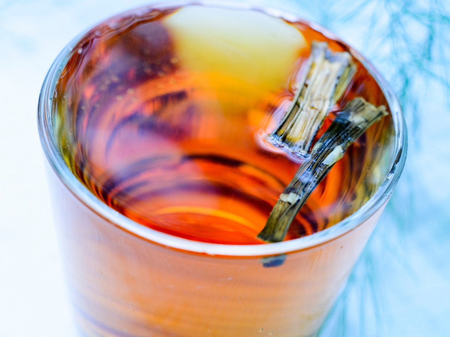 明日晴茶1g(3本から6本)にお湯を200ml注ぎます。