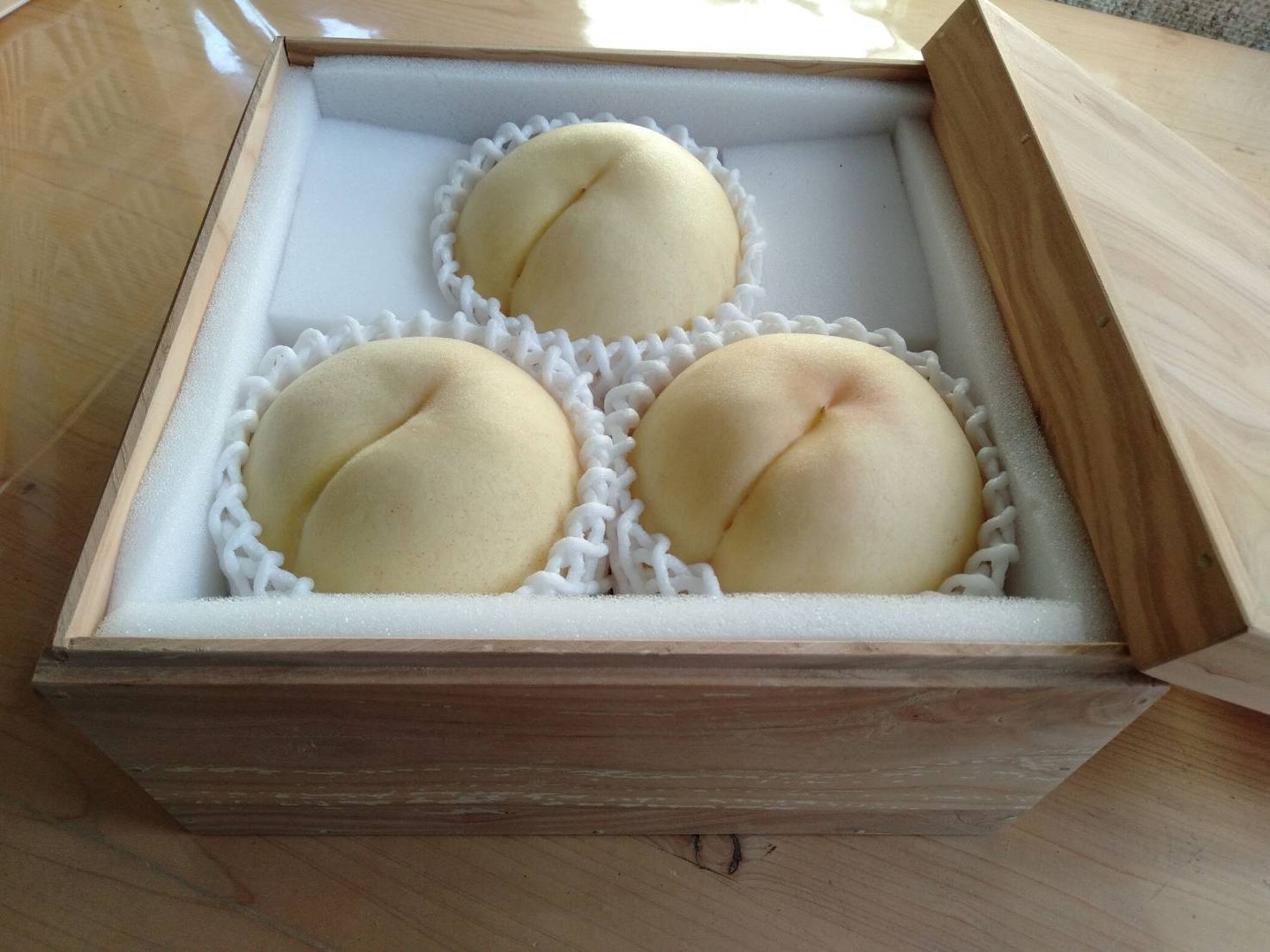 こういった桃は流通中にひっそりと箱の中で完熟を迎えます、。