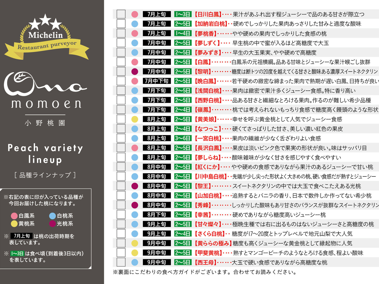 桃農家直伝の"虎の巻"とも言える品種ごとの追熟期間や食べ方など