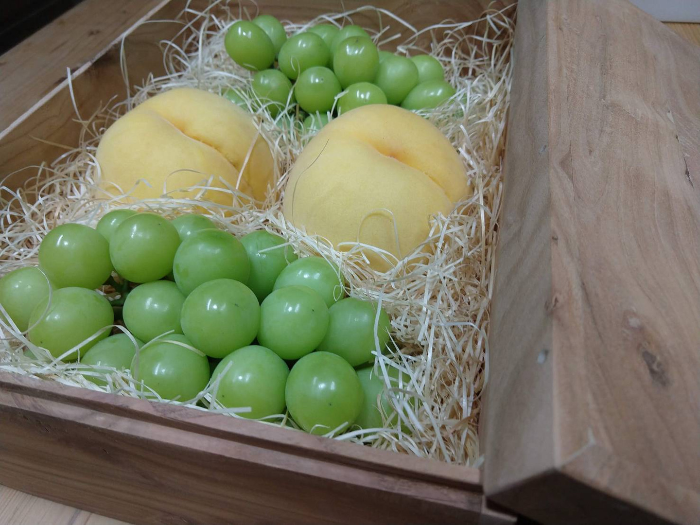 桃の樹を100%使った職人手作りの樹箱に入れてお届けします☆
