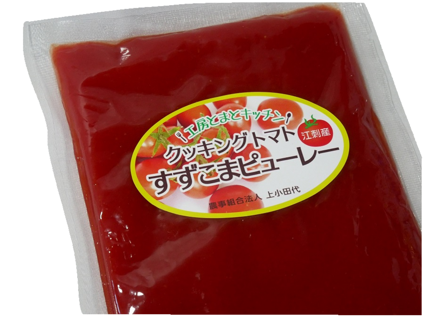 うまみ成分グルタミン酸がいっぱいの国産イタリアントマト『すずこま』を使った無添加トマトピューレーです。