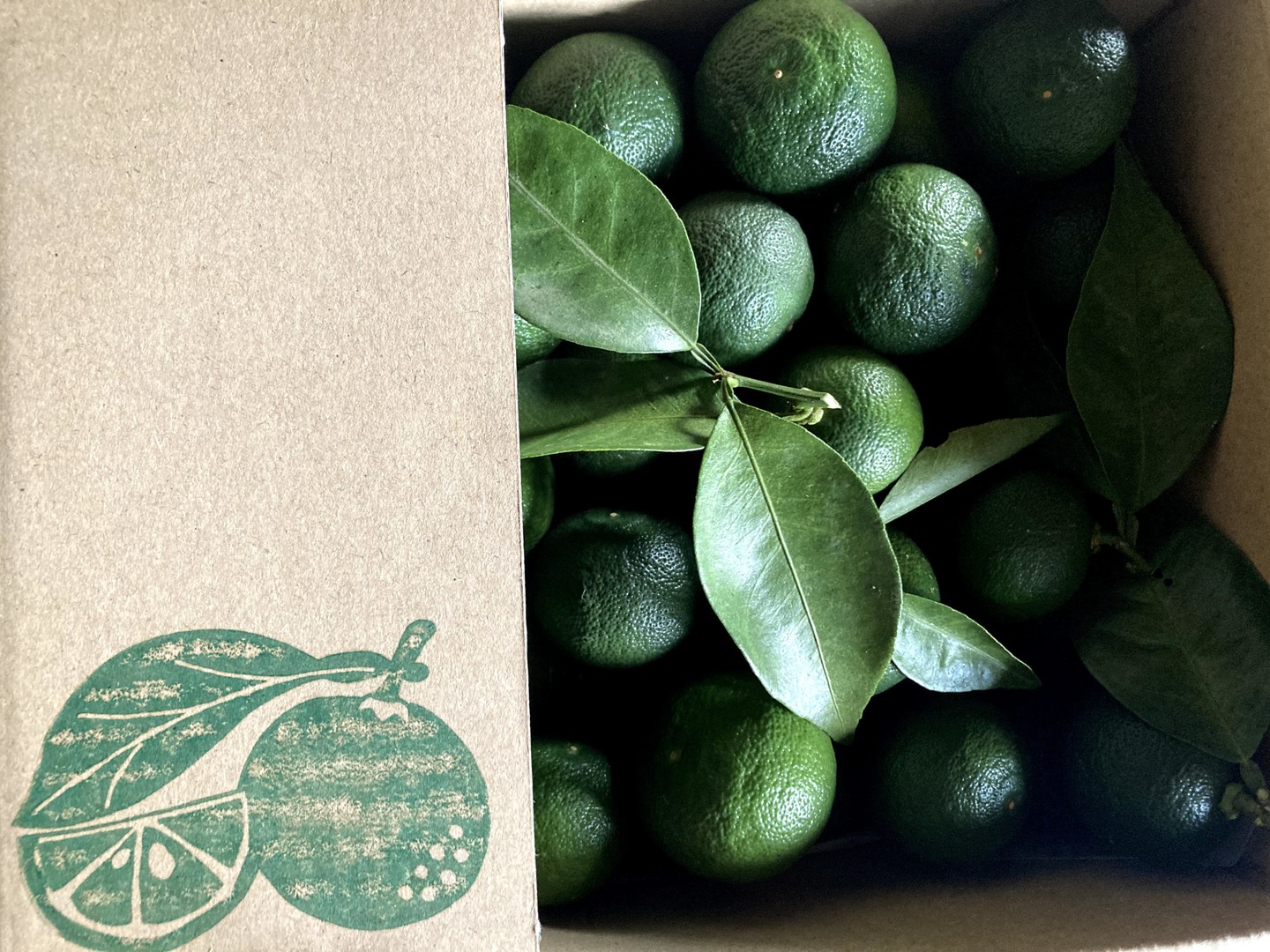 徳島県が生産の約97%を占めている“すだち”。私たちは、徳島県勝浦町で、豊かな水と山の傾斜地を利用して、温州みかんをメインに栽培していますが、夏に欠かせない香酸柑橘のすだちも育てています。すだちは、スライスして麺類に、皮をすりおろして冷や奴に。魚はもちろん、野菜炒めや味噌汁に果汁を入れても香りと酸味が楽しめます。お料理の参考となるよう、レシピ付きのお手紙も同封しています。果汁を使ってシャーベットやシロップ作りもオススメです。香り豊かな旬のすだち、是非お楽しみください!採れたてのすだちをお届けします!