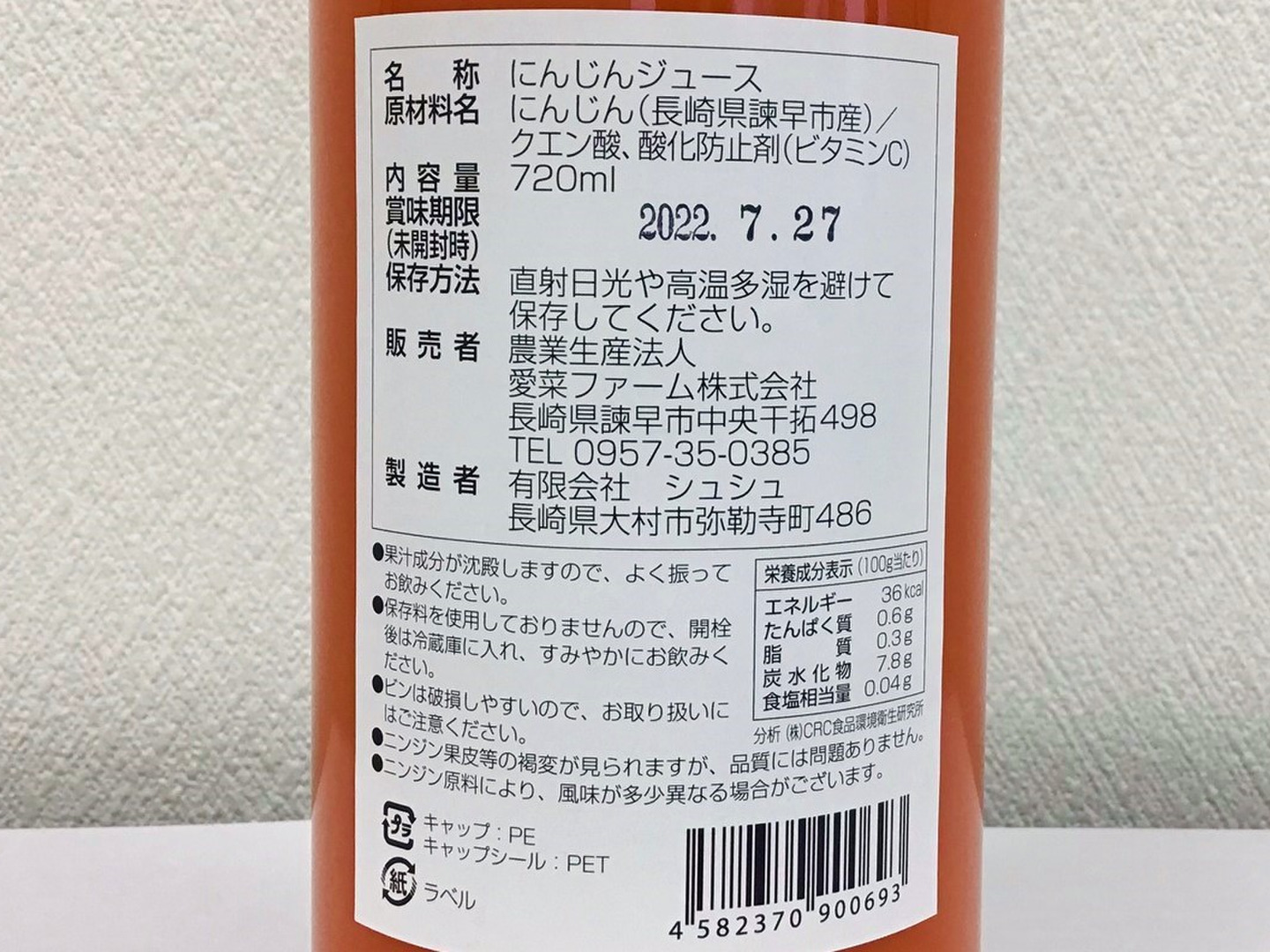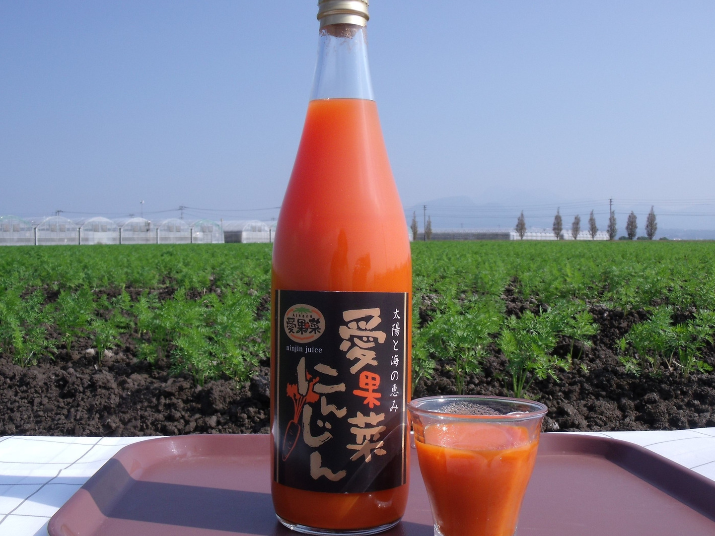 愛菜ファームの農場で収穫したにんじんと、自然由来で遺伝子組み換えなしの原材料でつくられたクエン酸とビタミンCだけで作ったジュースです。お砂糖や保存料は入っていません。