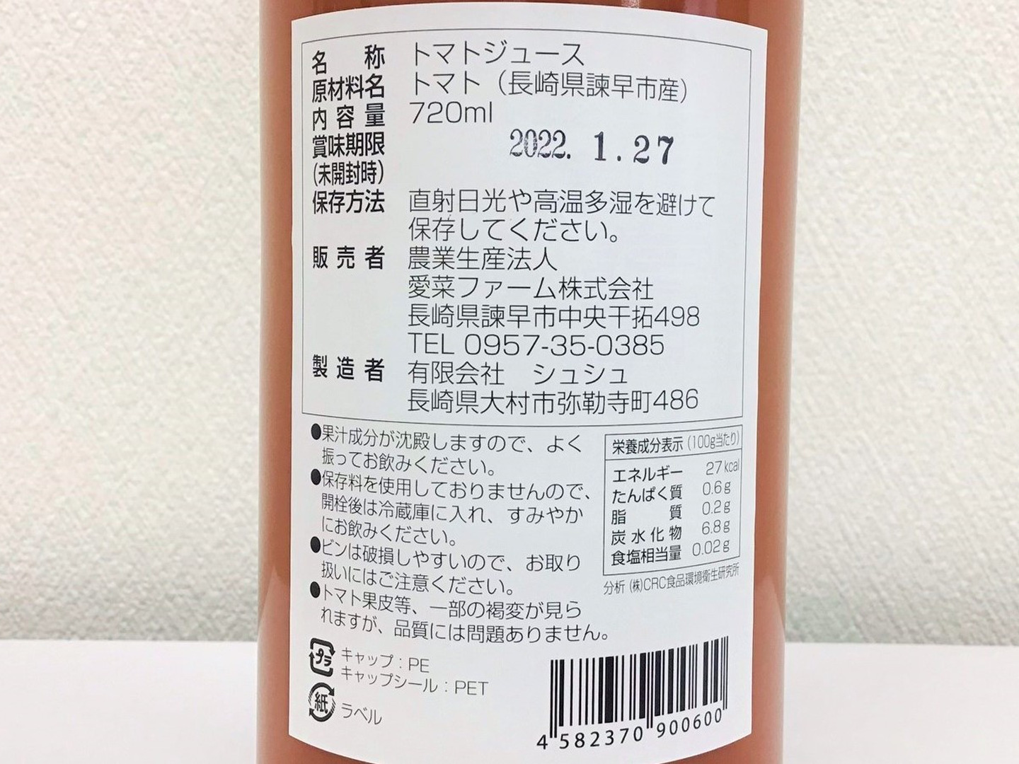 長崎県諫早市産 トマトジュース720ml 1本 にんじんジュース720ml 1本
