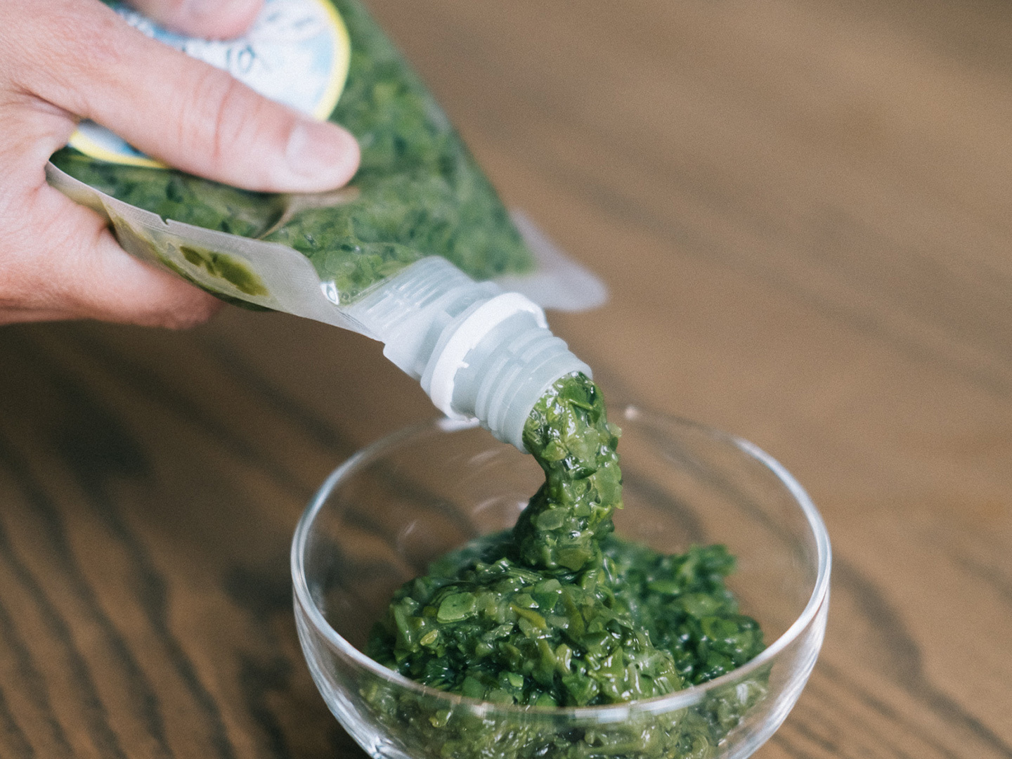有明海をこよなく愛する、わかめ一筋の私たちが、養殖から製造まで丹精をこめて、作りました。春の採れたてわかめの「めかぶ」を、下ゆでしてミキサーにかけて、そのままチューブパックに入れて冷凍しています。保存が難しい無添加新鮮な「めかぶとろろ」を長くお楽しみいただけます。冷凍のままだと6ヵ月保管できます。解凍後は5日〜1週間以内にお召し上がりください。