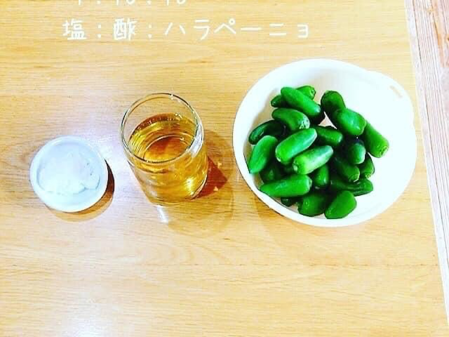 ハラペーニョ10:酢10:塩1 の割合でミキサーにかけるだけで簡単に自家製ハラペーニョソースが作れます。