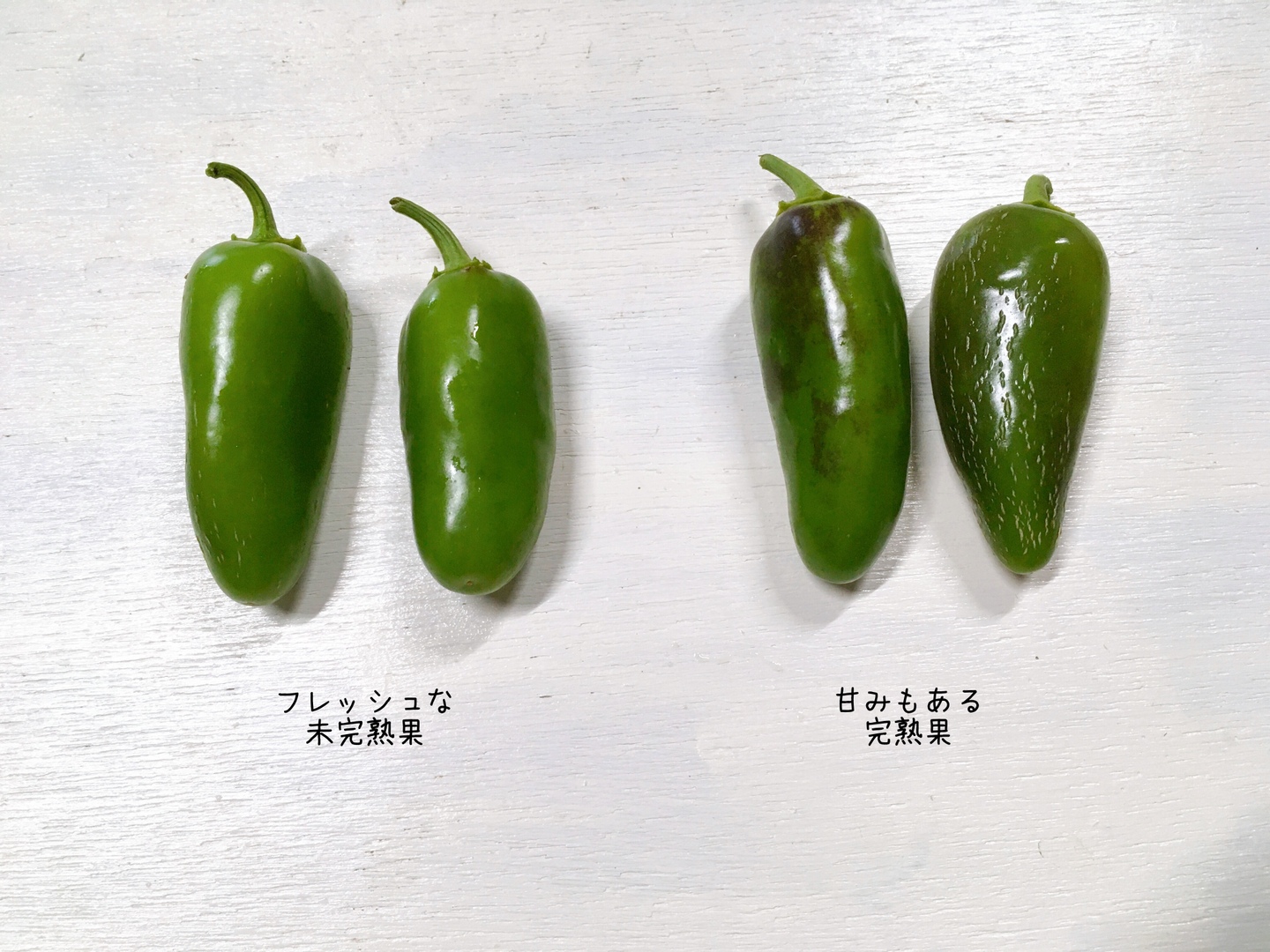 フレッシュな味わいの未熟果や、辛みの中にも甘みのある完熟果(黒くなりかけたものやひび割れたもの)が入ります。