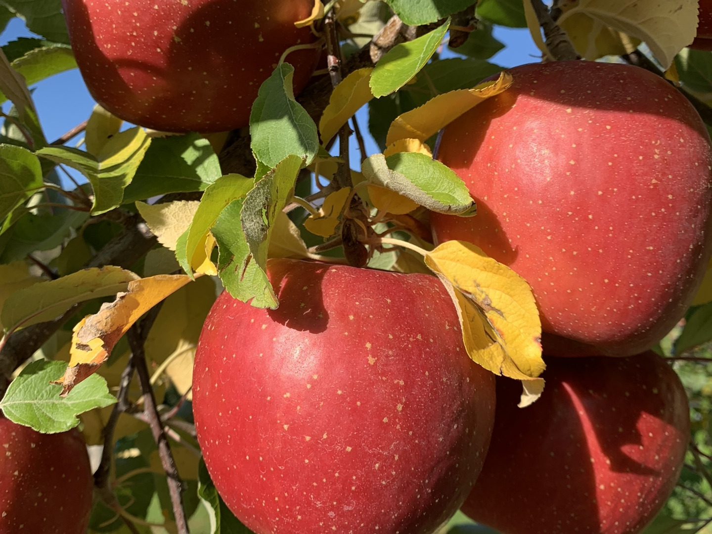 葉とらずりんごは葉の陰になる部分は太陽が当たらないため、果皮に色ムラができます。