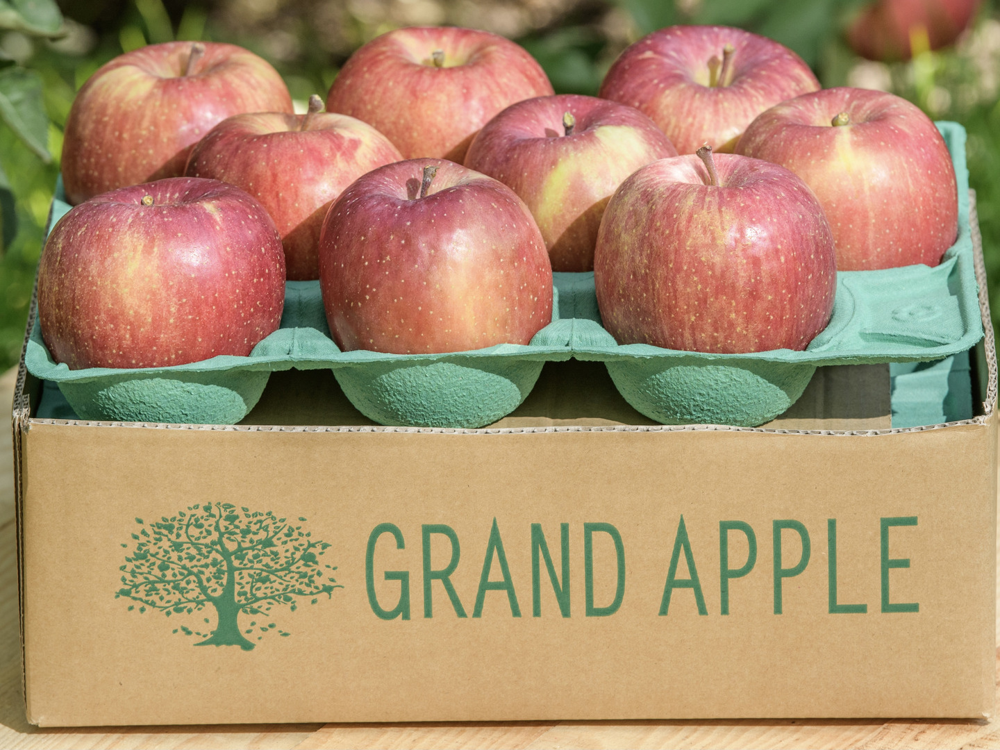 りんごの葉は太陽の恵みで養分を作り、りんごの果実にその養分を送っています。その蓄えられた養分は糖となるため、葉とらずりんごは葉を摘んだりんごより糖度が高くなります。