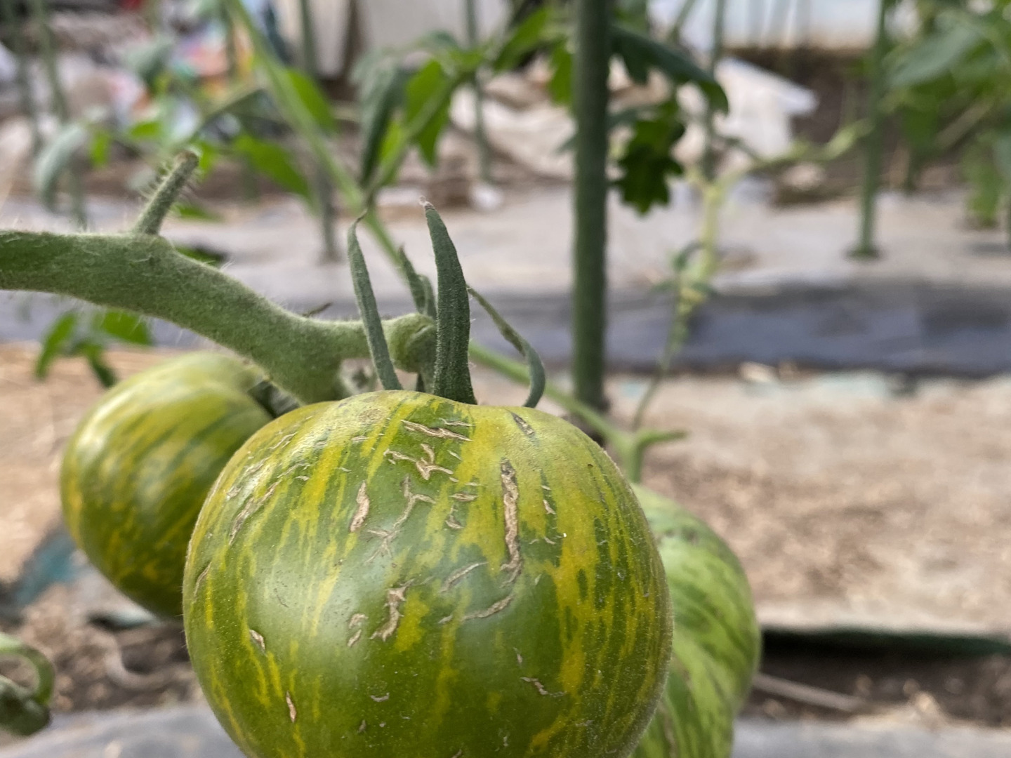 - 2 自家製燻炭、豆殻、糠、マコモを自然に返しています。