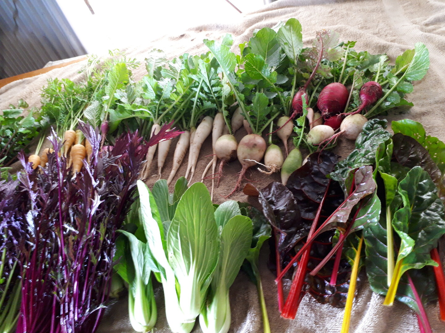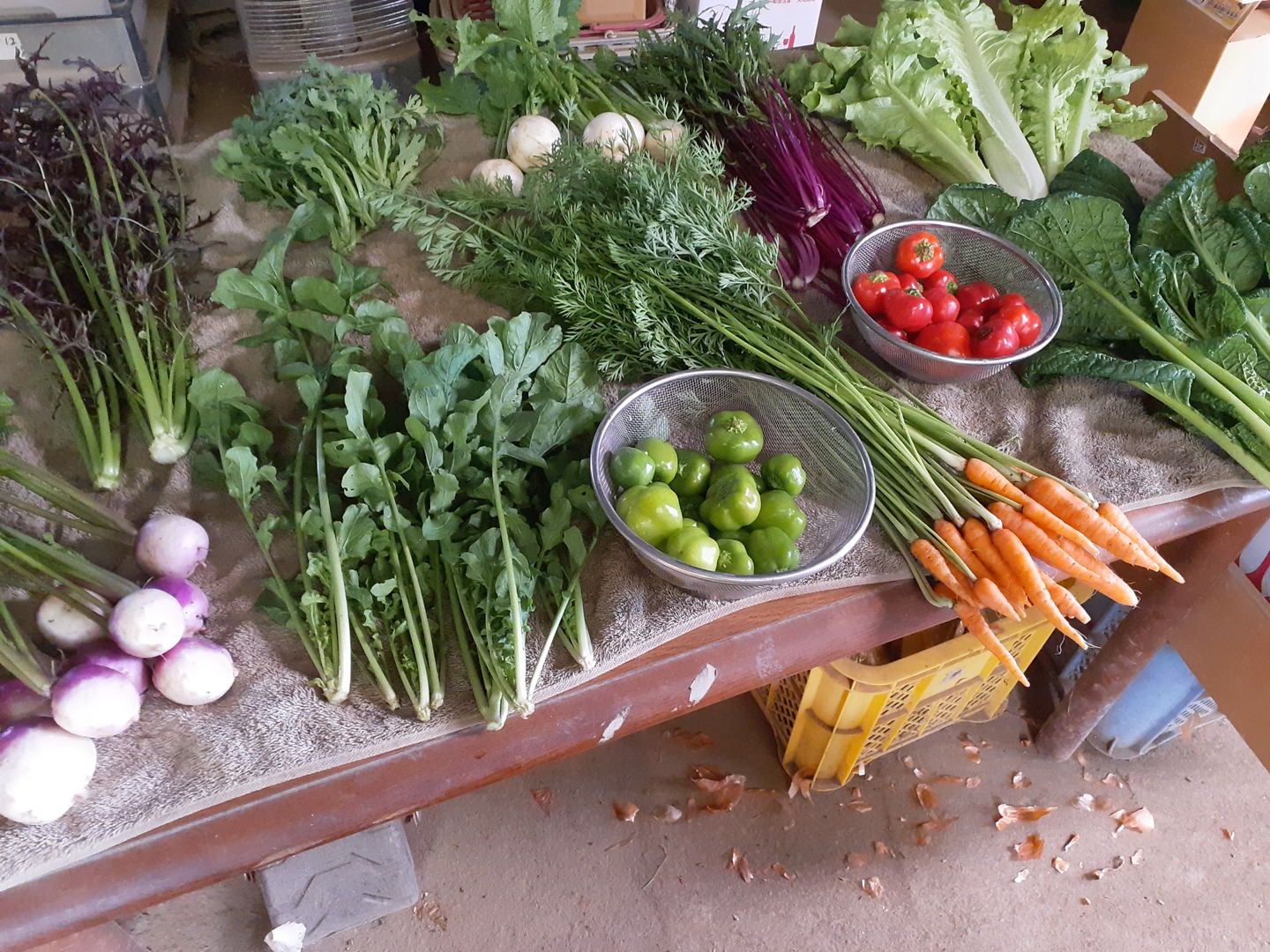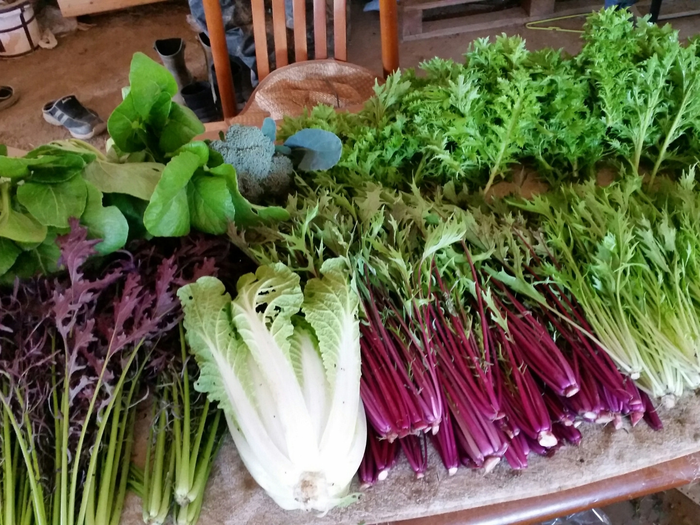 小松菜、水菜、山東菜、ほうれん草、チンゲン菜、キャベツ、レタス 、インゲン 、大根、かぶ、人参、 等