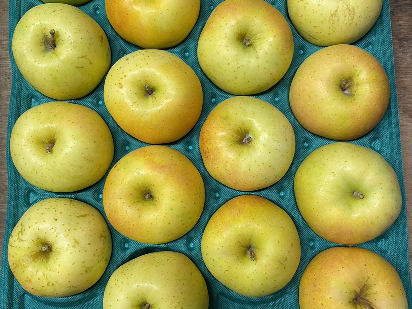 強い甘味の中にやさしい酸味があり、果汁が豊富でシャキシャキとした歯触り。王林に似たさわやかな芳香があり、食味の優れたりんごです。