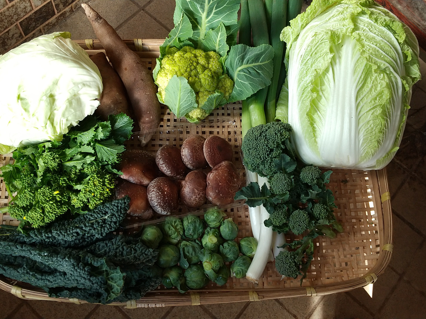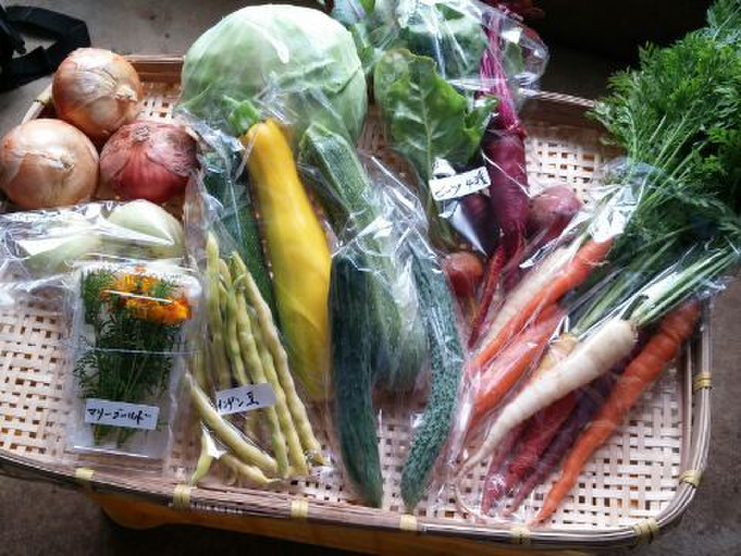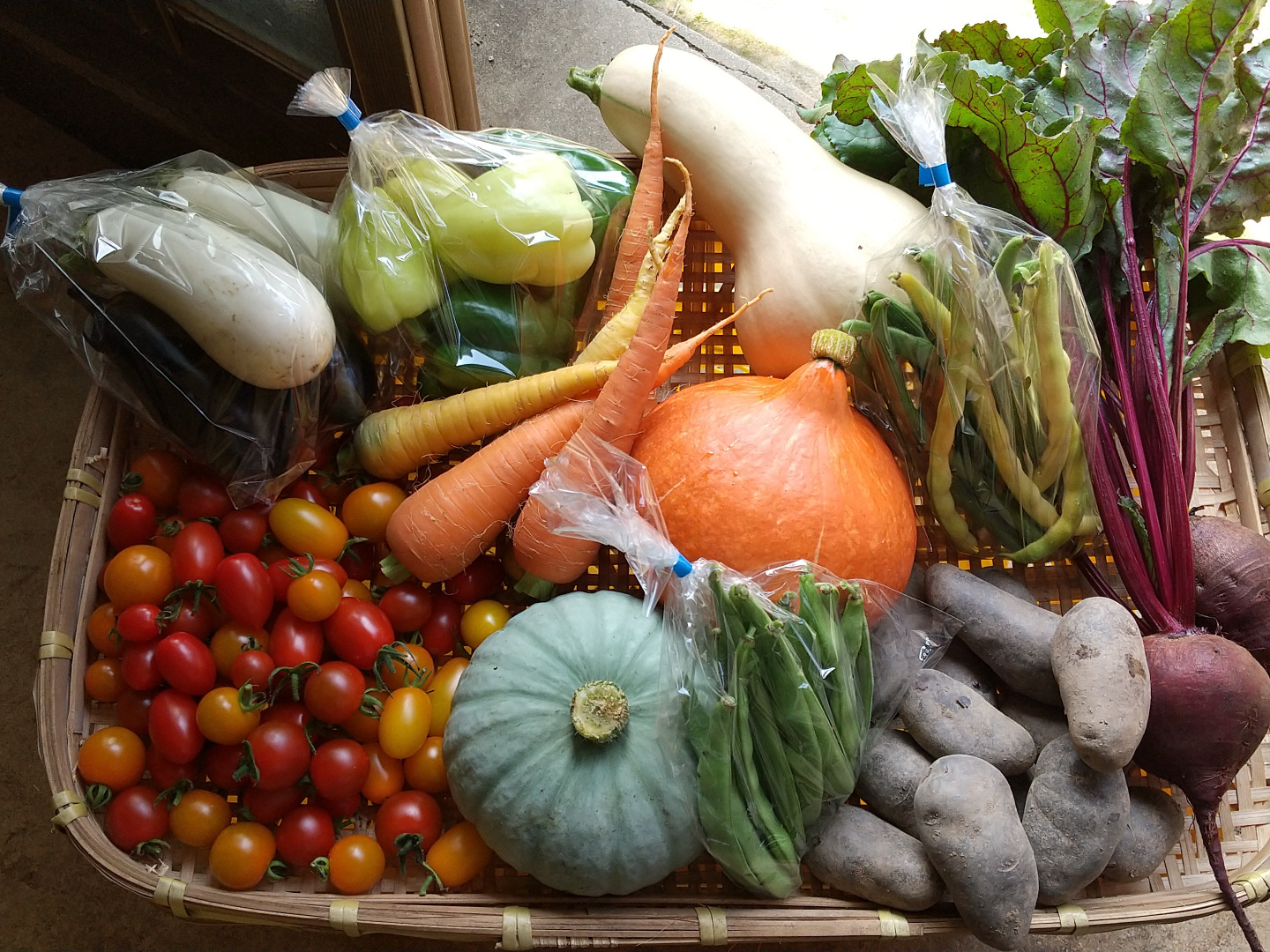 イチジク、ニンニク,スイスチャ-ド、ジャガイモ2種(シャドウクイン、男爵のいずれか)ツルムラサキ,空芯菜、モロヘイヤ、こふきカボチャ、白色カボチャ、ビーツ、金糸ウリ、サツマイモ、オクラのいずれか