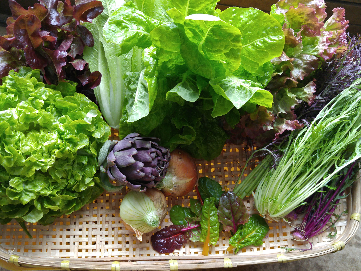 ホワイト6辺ニンニク、スイスチャ-ド,ジャガイモ(男爵、シャドウクインのいずれか)、ツルムラサキ、空芯菜、モロヘイヤ、カボチャ。ビーツ、サツマイモ、カラ-ピ-マン、オクラ、金糸ウリ、イチジク