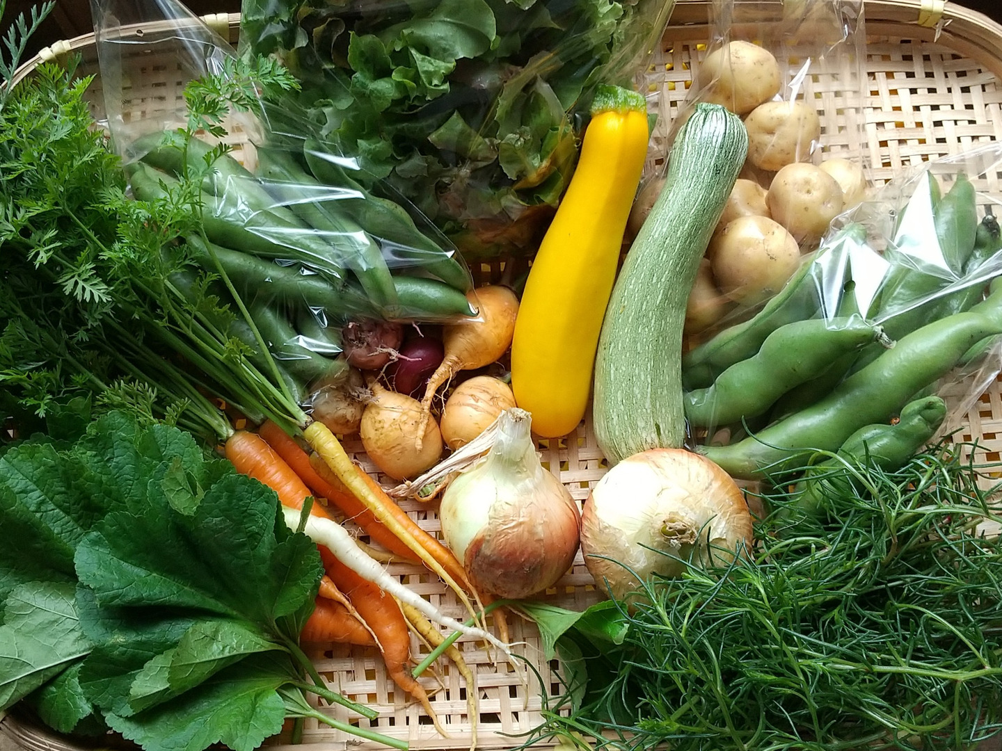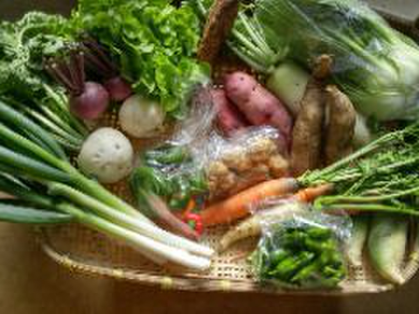 例えば、ニンジン、スミレカブ、カブ、大根、白菜、長ネギ、ヤーコン、黒大根、キャベツ、プチベール、子持ち高菜、小松菜、フェンネル、リーキその他旬のお野菜の中から8品目のお任せセットです。