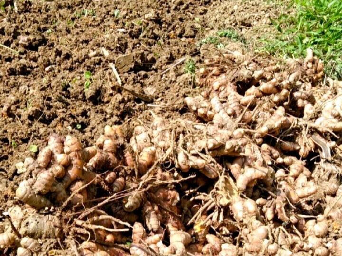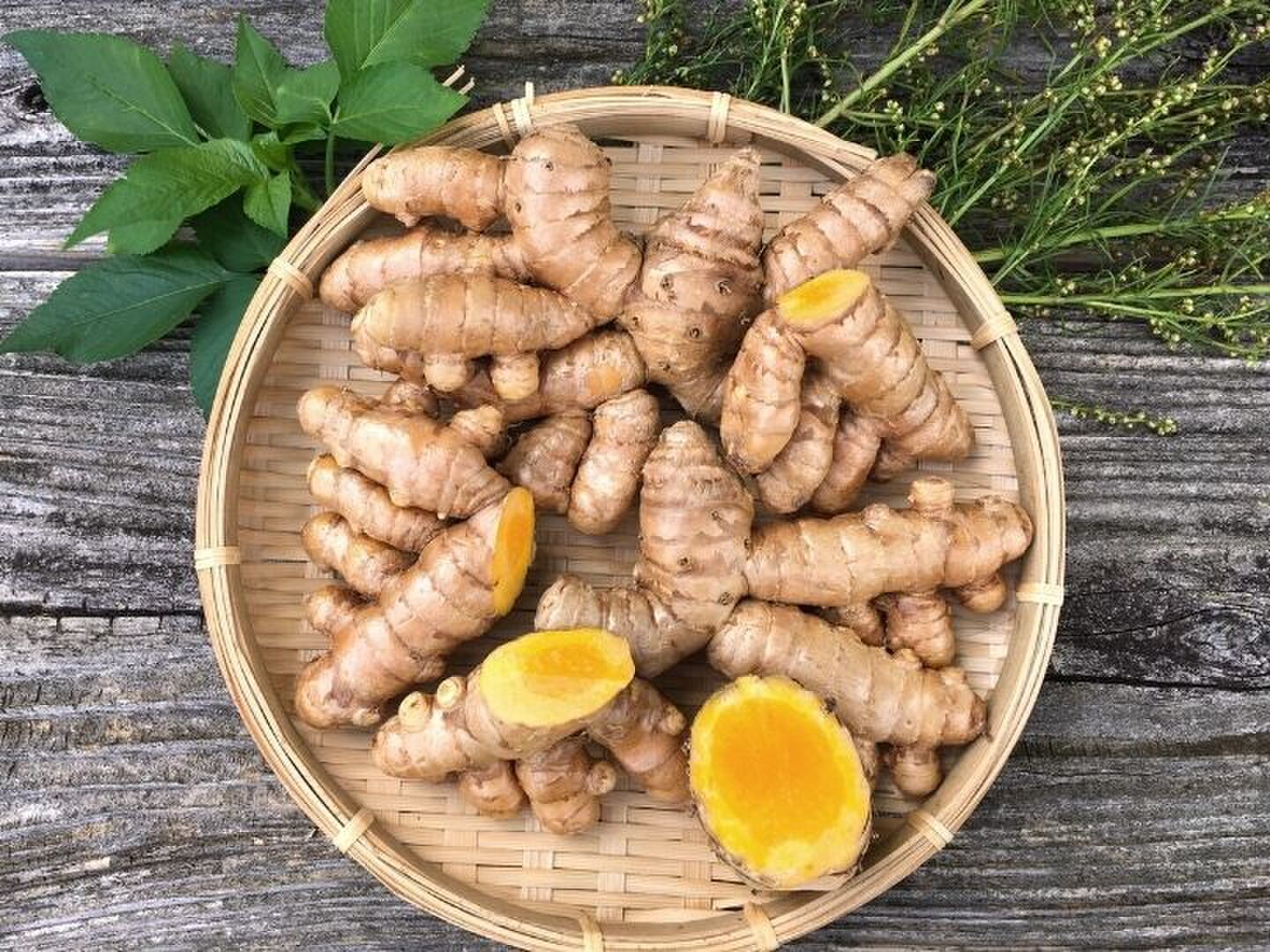 生の根茎は鮮やかなオレンジで、クルクミンが特徴的な成分です。