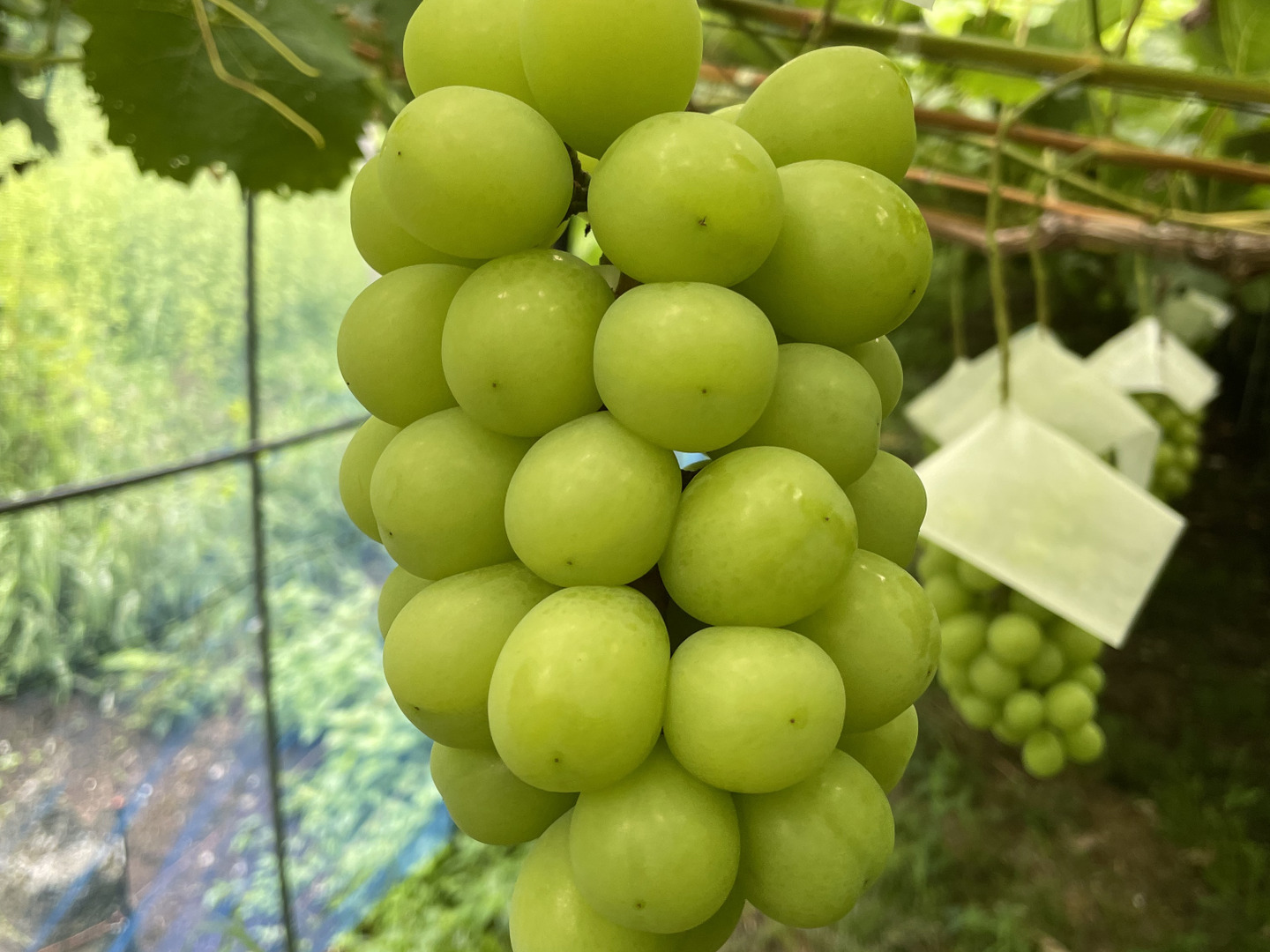 皮ごと食べられる種無しぶどう。パリッとした果皮。粒が大きく弾力があり、食べ応えのある果肉。糖度は非常に高く、酸味が少ないため、一層甘みが引き立ちます。