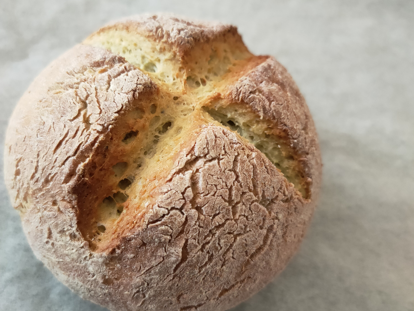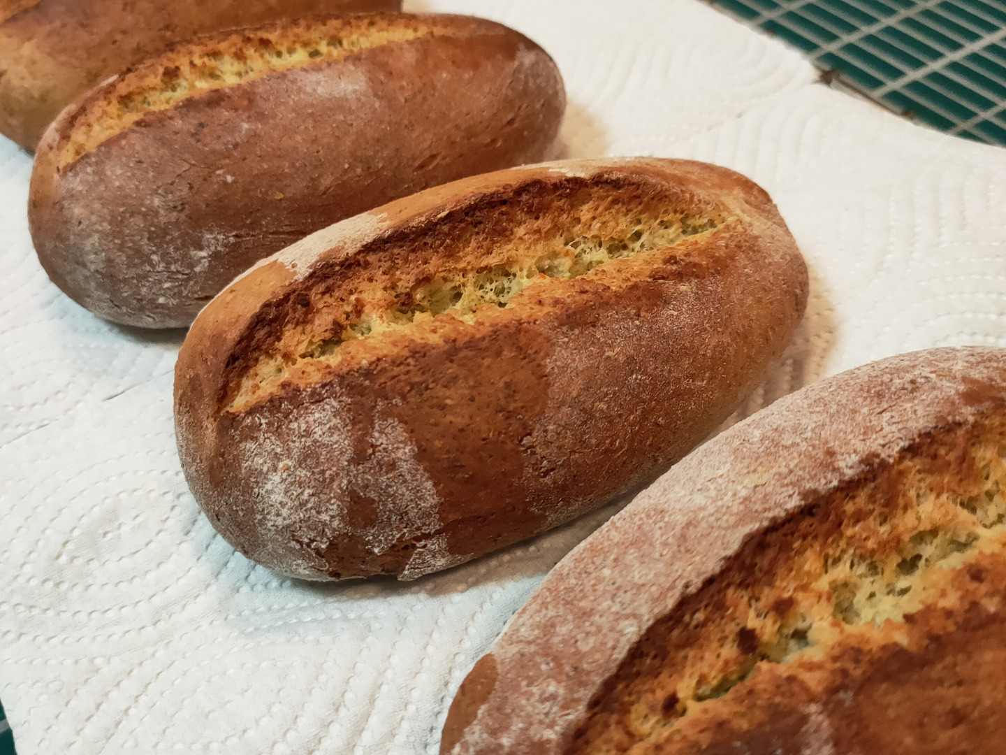 自家栽培大豆粉と小麦粉を1:1で配合して焼き上げた素朴な食事パンです。